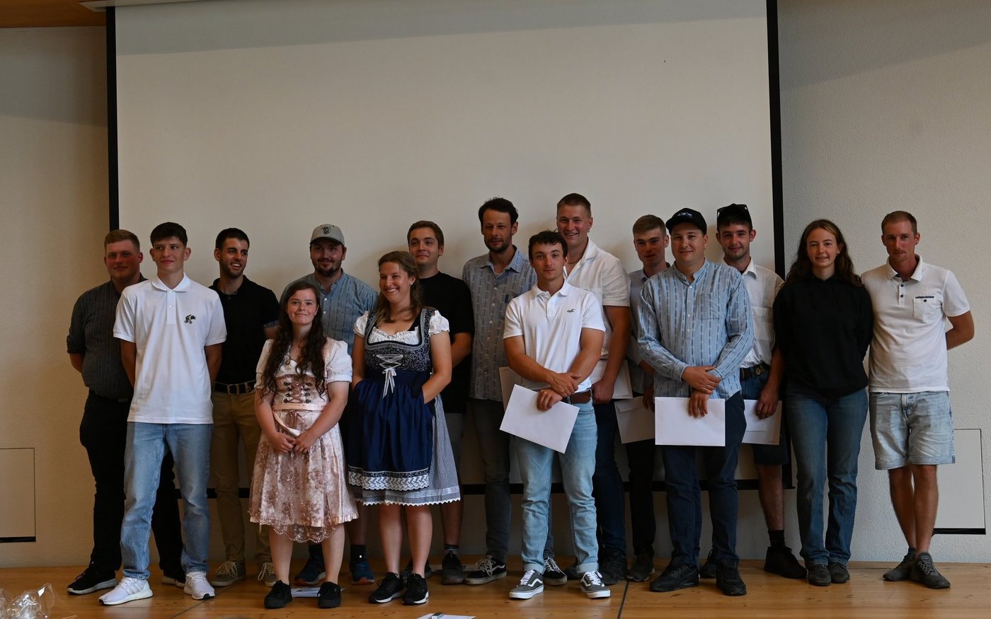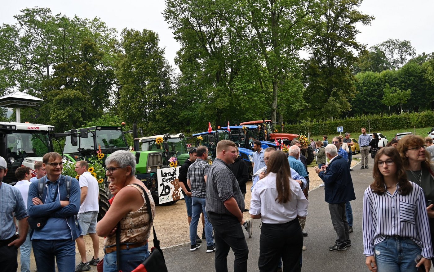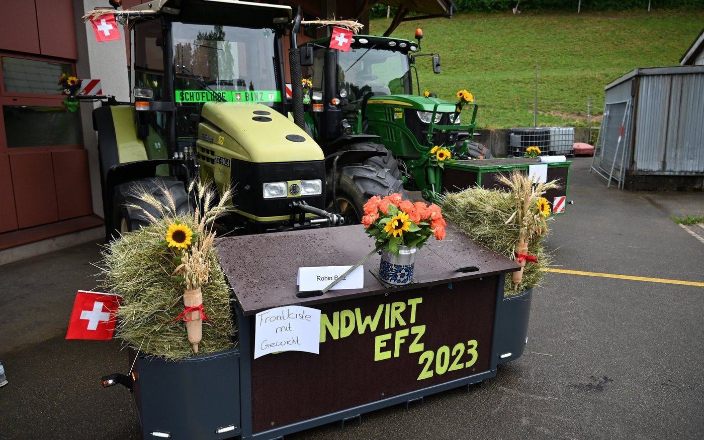 Am Ebenrain-Zentrum für Landwirtschaft, Natur und Ernährung im baselbieterischen Sissach herrscht heute Freitagvormittag (30. Juni) Hochbetrieb. Wenn die Abschlussklasse Landwirt/in EFZ ihre Schlussfeier hat, reist sie traditionell mit geschmückten Traktoren an. Auch heute war das nicht anders. Und wie es sich für eine Abschlussfeier gehört, sind auch Familie und die Ausbildner(innen) mit dabei. Wo man auch hinschaut, es gibt lauter strahlende und stolze Gesichter zu sehen. Ganz anders sah das noch vor einem Jahr aus. Leandra Guindy, Leiterin landwirtschaftliche Berufsfachschule Ebenrain und Lehrerein, zeigt bei ihrer Begrüssungsrede ein Bild der Klasse vom ersten Schultag im August letzten Jahres. Etwas skeptisch blicken die jungen Frauen und Männer da drein.