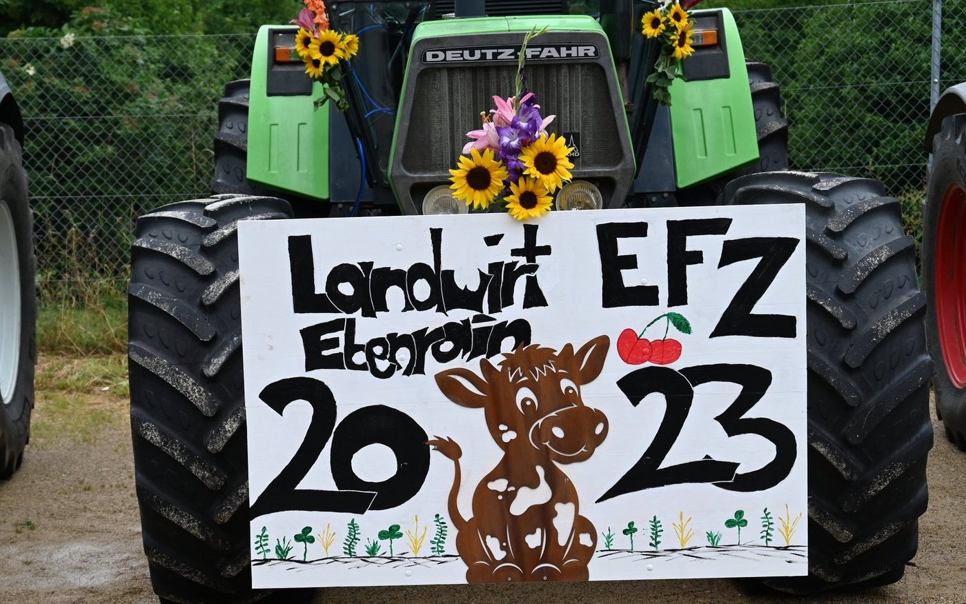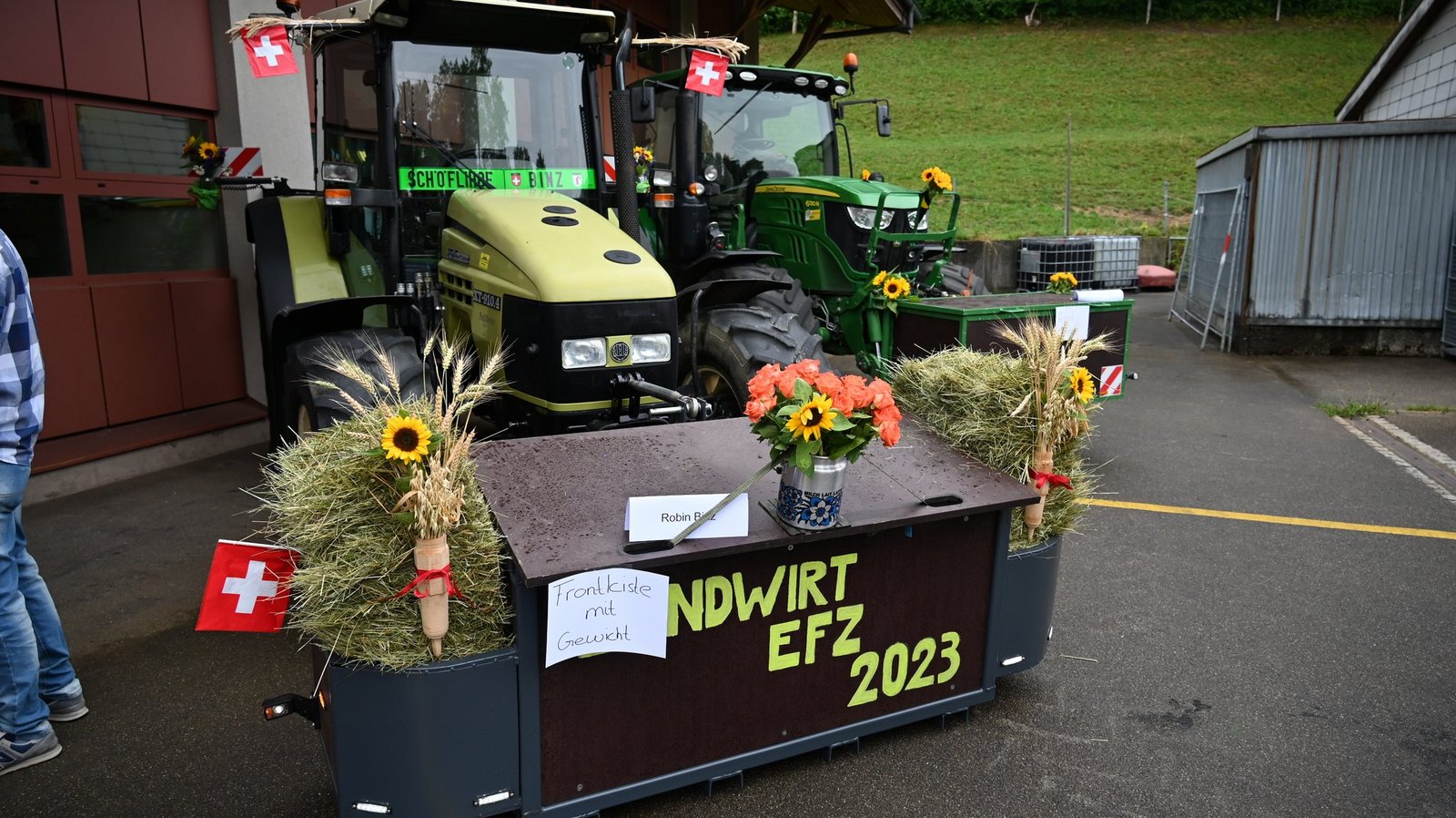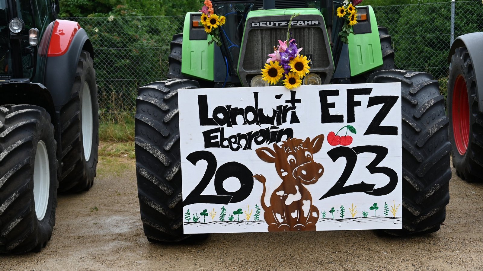 Am Ebenrain-Zentrum für Landwirtschaft, Natur und Ernährung im baselbieterischen Sissach herrscht heute Freitagvormittag (30. Juni) Hochbetrieb. Wenn die Abschlussklasse Landwirt/in EFZ ihre Schlussfeier hat, reist sie traditionell mit geschmückten Traktoren an. Auch heute war das nicht anders. Und wie es sich für eine Abschlussfeier gehört, sind auch Familie und die Ausbildner(innen) mit dabei. Wo man auch hinschaut, es gibt lauter strahlende und stolze Gesichter zu sehen. Ganz anders sah das noch vor einem Jahr aus. Leandra Guindy, Leiterin landwirtschaftliche Berufsfachschule Ebenrain und Lehrerein, zeigt bei ihrer Begrüssungsrede ein Bild der Klasse vom ersten Schultag im August letzten Jahres. Etwas skeptisch blicken die jungen Frauen und Männer da drein.