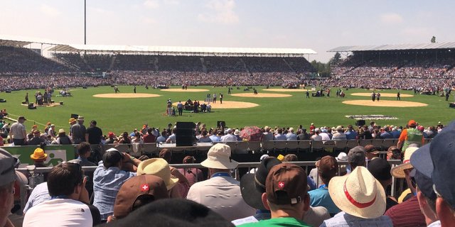 Beim alle drei Jahre stattfindenden Stelldichein der Nationalsportarten anlässlich des Eidgenössischen Schwing- und Älplerfestes nämlich sind Schwingen und Steinstossen fixer Bestandteil – nicht aber das Hornussen, welches sich im Kampf um die raren Freiflächen jeweils mit dem Privatverkehr zu messen hat. Mit besserem Ende häufig für das Parkplatzregime.