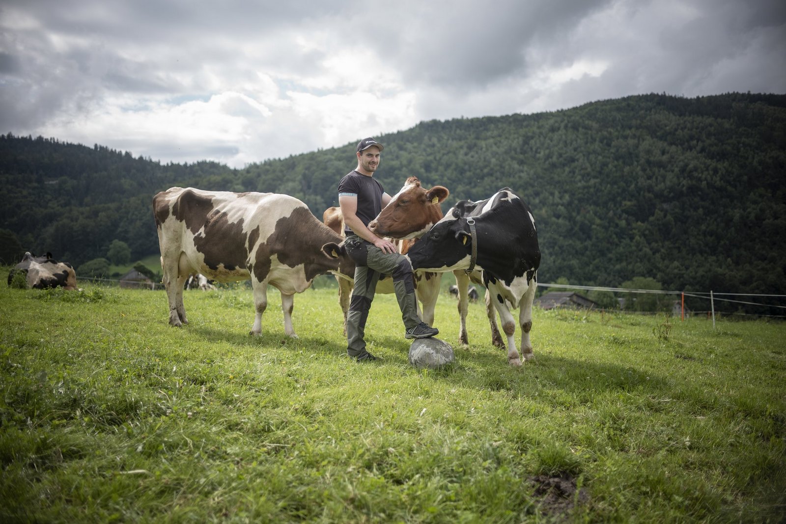 Nein, ein Obelix ist Remo Schuler nicht. Dafür ist er mit 1,86 Meter Körpergrösse zu kurz geraten. Andererseits schlägt ihm mit seinen 100 Kilo Kampfgewicht aber auch keine Obsession hinspeislich Wildschweinbraten schwerverdaulich auf die Rippen. «In der Fraktion der Steinstösser gehöre ich tatsächlich zu den schmächtigeren», sagt der Landwirt aus Rickenbach SZ und holt Anlauf. Zwei Schritte zurück, links der Maschinenpark; die Zehenspitzen des rechten Fusses hochgezogen, rechts die Kälber im Stall.
