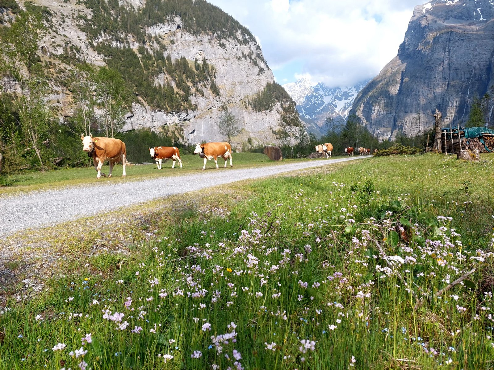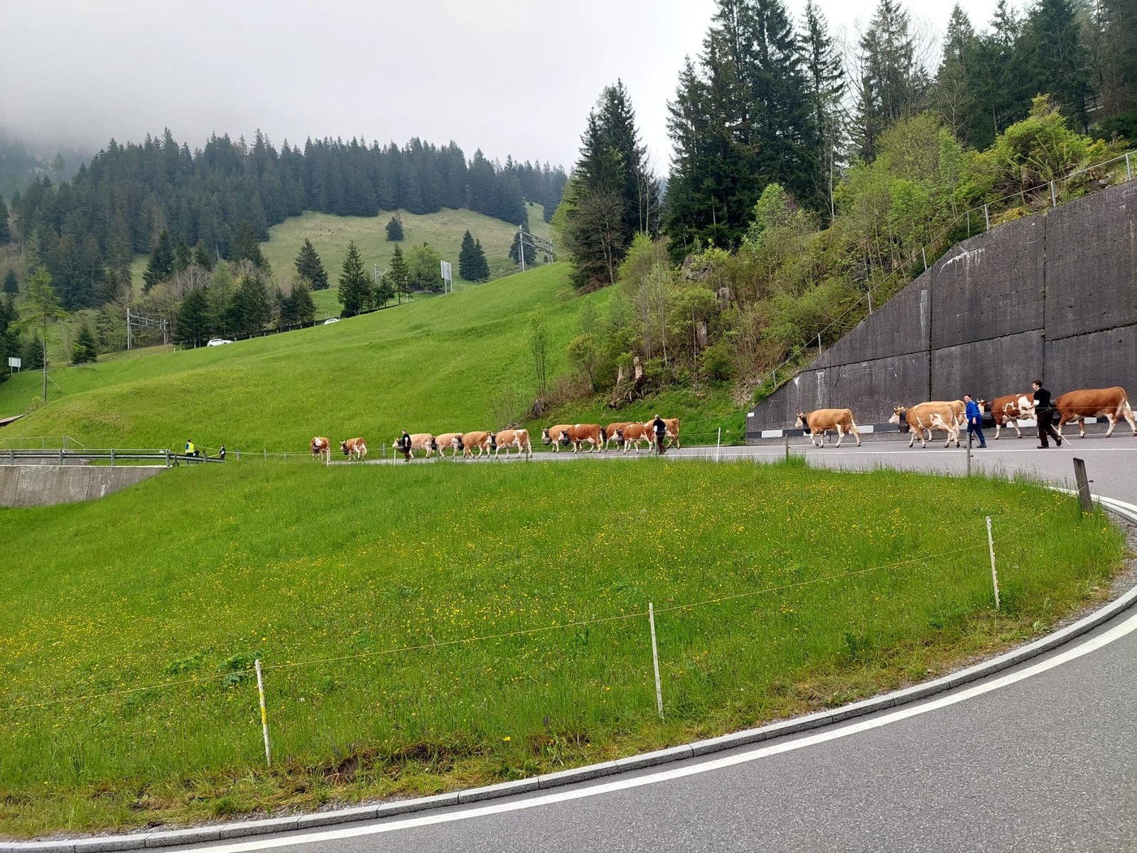 Am Samstag, dem 20. Mai 2023, zogen Hanspeter und Sohn Peter Ryter aus Kandergrund mit ihren reinen Simmentalerkühen und -rindern (55 Stück) auf ihre Alp Gasternholz. Die Alp liegt auf 1380 m ü. M. im Gasterntal im Berner Oberland. «Dank dem vielen Gras konnten wir dieses Jahr eine Woche früher z Alp gehen», sagt Peter Ryter. Am Abend um 18 Uhr ging es los mit dem Alpaufzug. Der Fussmarsch dauerte gut drei Stunden…