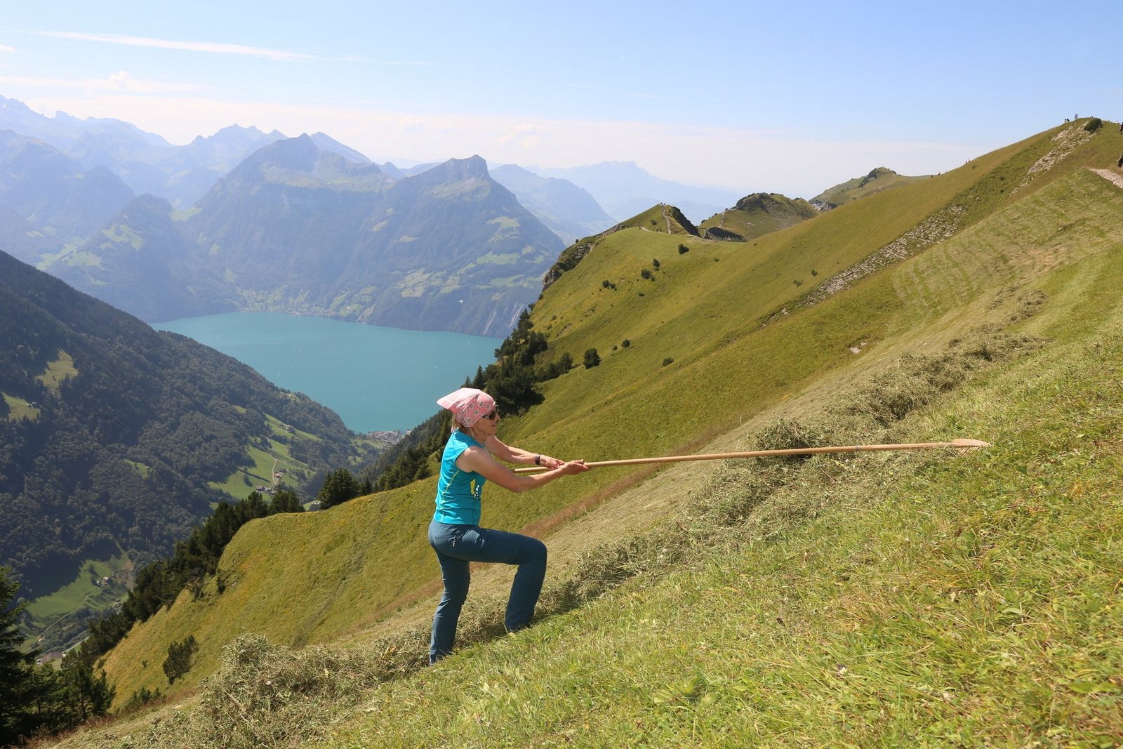 Ausgesetzt unter steilen Felsenbändern in unwegsamem Gelände, so stellt man sich den Zustieg zu einem Wildheuer vor. Möchte man Erwin Lüönd bei seiner Arbeit besuchen, geht das bedeutend gemütlicher: Erst mit der steilen Standseilbahn auf den Stoos, dann mit dem Sessellift auf den gut 1900 Meter hohen Klingenstock und zum Schluss noch eine kurze Wanderung über den gut ausgebauten Gratweg Richtung Fronalpstock. [IMG…