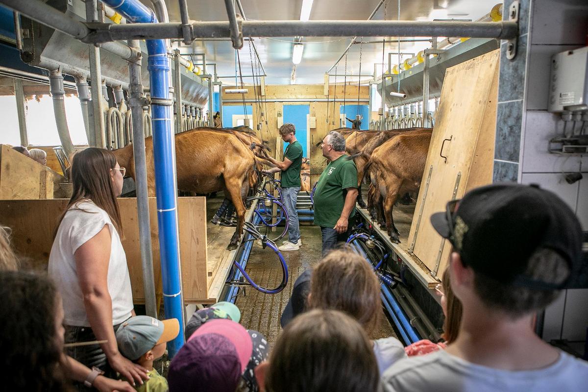 Stallvisite: Ganzjähriges Angebot mit individuell festlegbaren Öffnungszeiten, bei dem Konsument(innen) die Tierhaltung live erleben können.