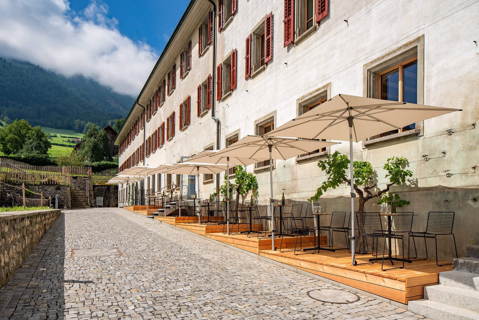 Das Angebot des Culinariums ist vielfältig, wie es in einer Mitteilung zur heutigen Eröffnung heisst. Im Restaurant werden Speisen aus regionalen Produkten serviert, 14 Herbergezimmer laden zur stilvollen Übernachtung ein. Hinzukommen Sehenswürdigkeiten wie der Alpsprinzkeller, ein Klosterladen und die Schulküche.