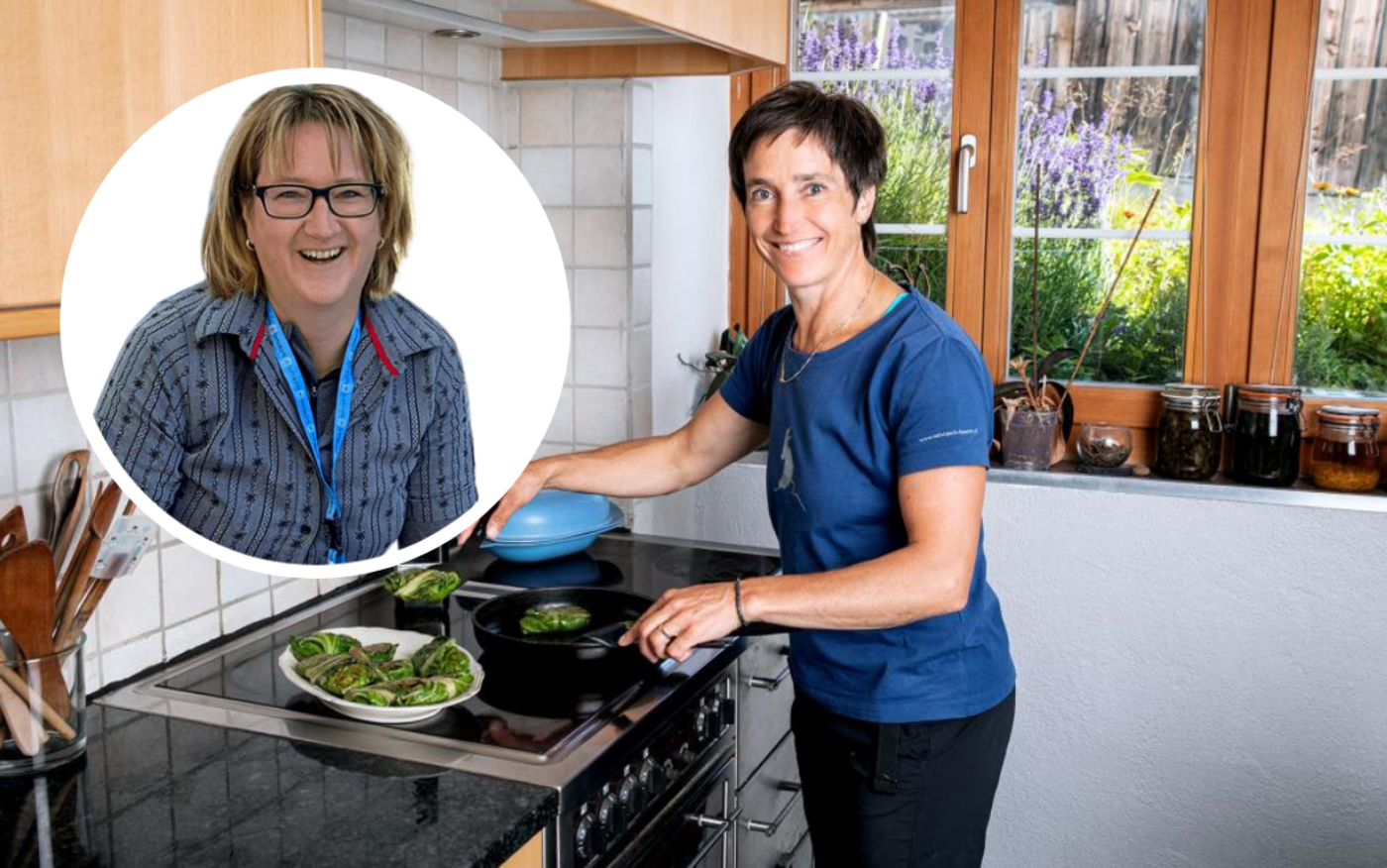 Als zweite Gastgeberin der diesjährigen Staffel der SRF-Landfrauenküche lud Regula Schmid in den Kanton Graubünden nach Inner Glas ein, ein Weiler der zur Gemeinde Tschappina gehört. Jeder Kanton hat so seine typischen Gerichte. Und beim Stichwort Bündnerland kommen mir unweigerlich Pizokel, Capuns, Bünder Gerstensuppe, Nusstorte und Bündnerfleisch in den Sinn. Auch die Landfrauen tippten darauf, dass Regula Schmid Bündner Spezialitäten in ihr Menü einbauen würde. Aber weit gefehlt, sie liess sich nicht in eine Schublade drücken sondern kochte ihre ganz eigenen Rezepte. Dass Spezialitäten aus ihrem Heimatkanton von den anderen Landfrauen jedoch erwartet werden, damit hat die Gastgeberin wohl gerechnet und Salsiz, Käse, Bündnerfleisch und Nusstorte zum Aperitif serviert. Ein cleverer Schachzug, um trotzdem den Erwartungen gerecht zu werden.