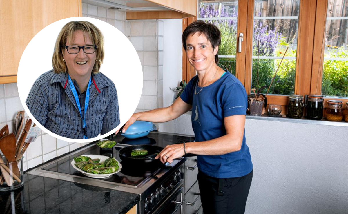 Zur Hauptspeise servierte Regula Schmid den Fleischesserinnen Rindsfilet mit Kräuterkruste, Ofenkartoffeln in Rosenform sowie Karotten und Kefen. Regula Schmid hat das Filet gewürzt und ziehen lassen, was mehr Geschmack bedeutet. Lange Zeit wurde immer propagiert, Marinaden für Fleisch dürften kein Salz enthalten. Dieses würde Wasser entziehen und das Fleisch zäh und trocken werden lassen. Heute gilt vielfach eine andere Meinung. Unbestritten ist, dass das Salz zunächst den Fleischsaft aus dem Fleisch zieht, die sogenannte Osmose. Aber, wie etwa Schweizer Fleisch auf ihrer Website erklärt, passiert danach noch etwas anderes, die sogenannte Diffusion. Der ausgetretene Saft wird – samt dem gelösten Salz – nach einiger Zeit auch wieder vom Fleisch aufgesogen. Es sei alles eine Frage der Zeit. Vor allem bei grossen Fleischstücken, die über mehrere Stunden mariniert werden, zeige nur eine Marinade mit Salz die gewünschte Wirkung: