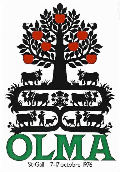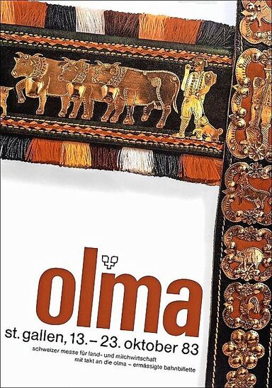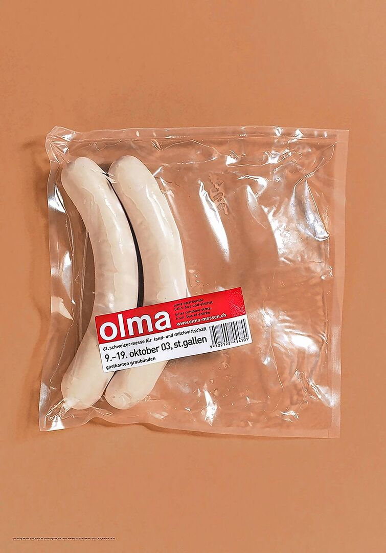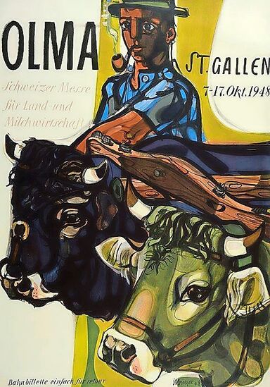 Was als Ostschweizerische Land- und Milchwirtschaftliche Ausstellung startete, wurde später zur Schweizer Messe für Land- und Milchwirtschaft und entwickelte sich bis heute zur Schweizer Messe für Landwirtschaft und Ernährung. Dieses Jahr findet die Olma zum 82. Mal statt, wie immer in St. Gallen. Wie immer mit Wurst – aber ohne Senf. Und beim Thema Olma-Bratwurst ist man schon direkt im Politikum rund um die Plakatgeschichte der Messe. Diese hat nämlich eine lange Tradition.