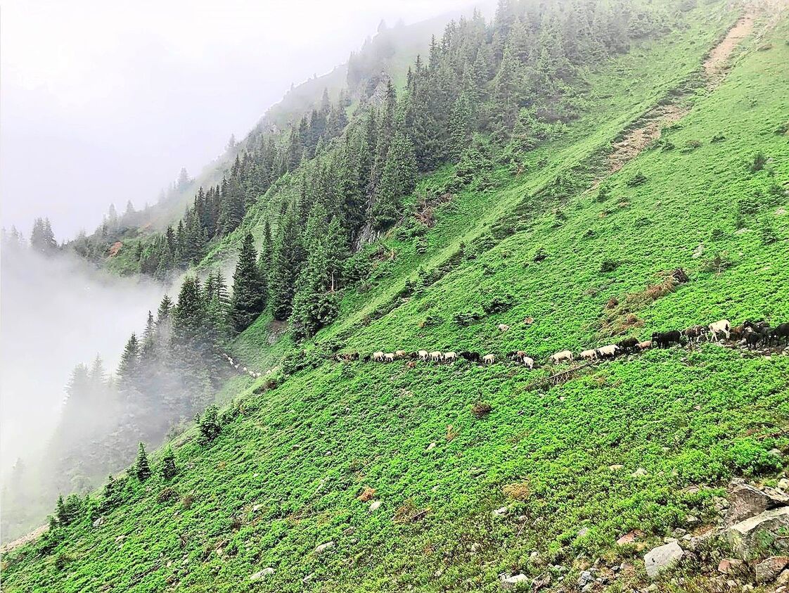 Mitte Juli: Immer wieder freue ich mich, zu sehen, wie die Herde im Morgennebel einer Perlenschnur gleich von der Nachtweide in Richtung Weidegebiet läuft. Meine Mithirtin und zwei Herdenschutzhunde laufen voraus, ich, drei Herdenschutzhunde und meine Hütehunde hinterher. In der Mitte: die Herde. Die Herde wie ein Wildbach Jedes Mal, wenn ich der Herde so zuschaue, fällt mir auf, dass sie sich wie Wasser verhält.…
