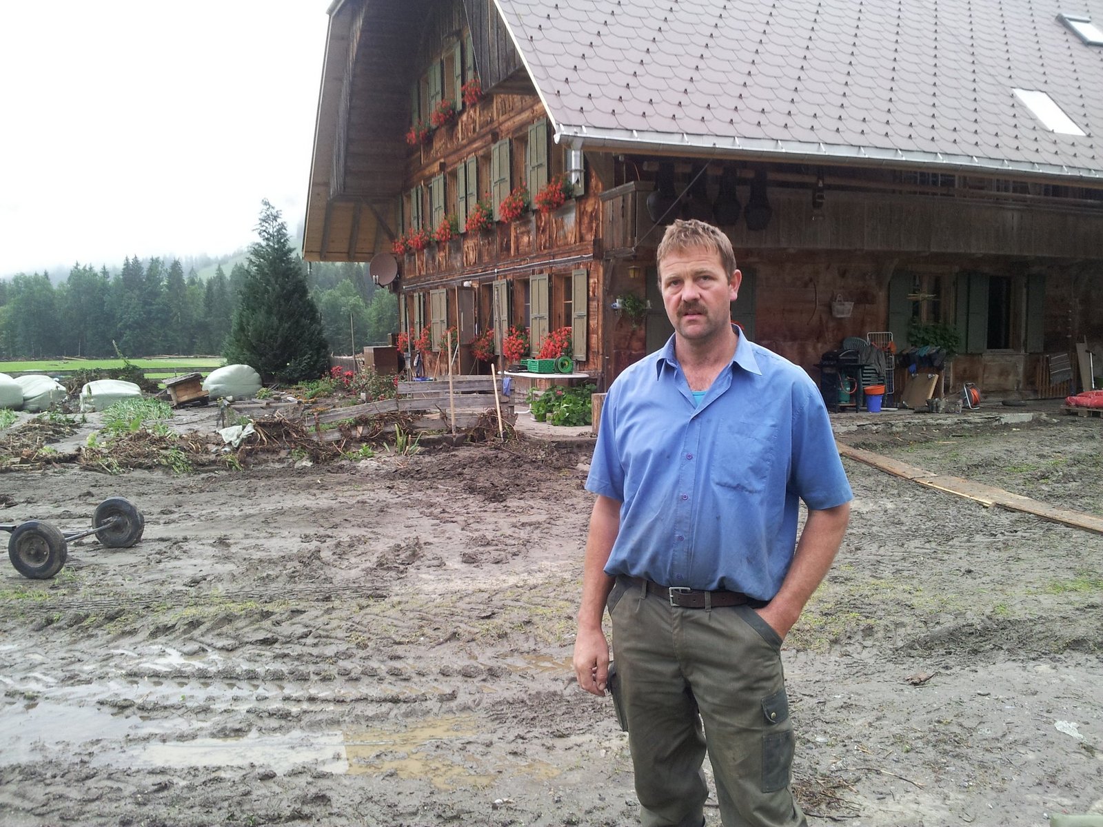Dem Landwirt reichte es nicht mehr, sich im Haus in Sicherheit zu bringen, als das Wasser kam. Er habe lediglich den Kindern zurufen können, sich in den obersten Stock zu begeben, als er zusehen musste, wie Wasser und das mitgeführte Geröll sein Haus bedrohten.