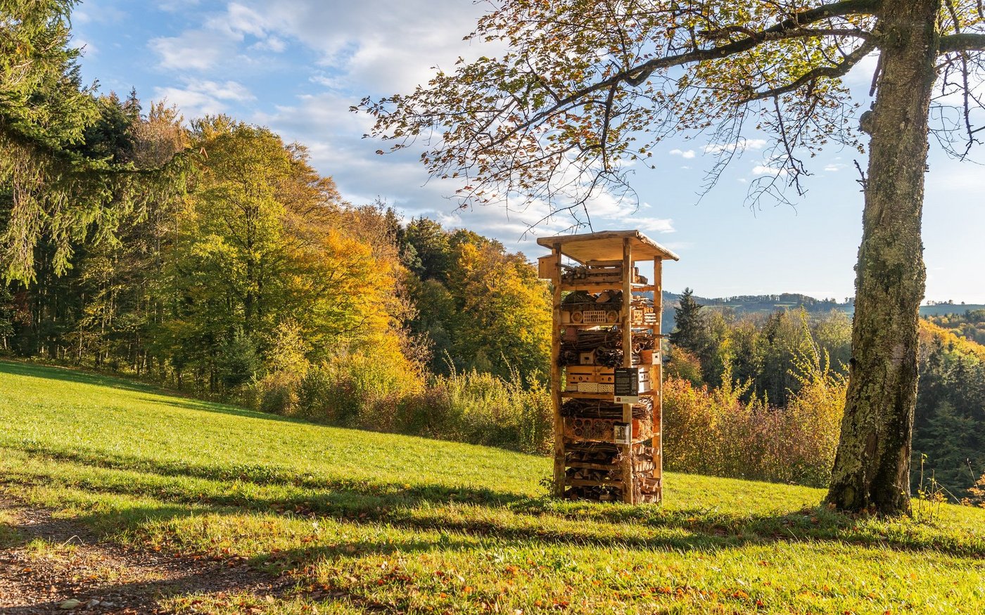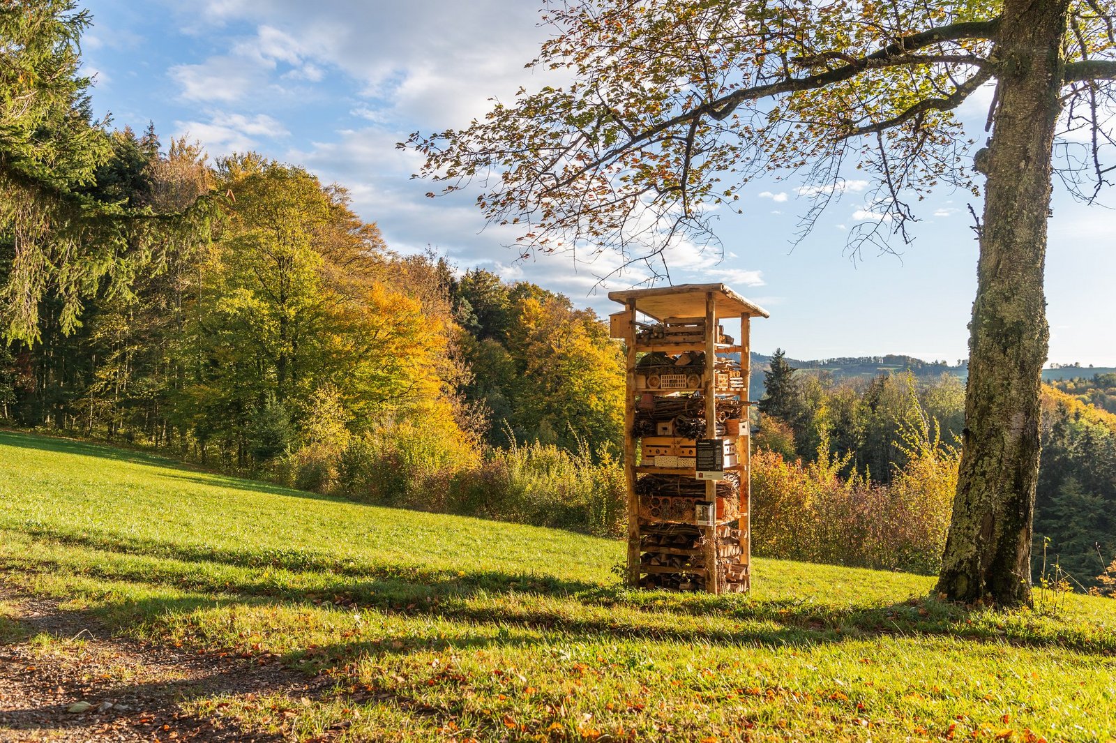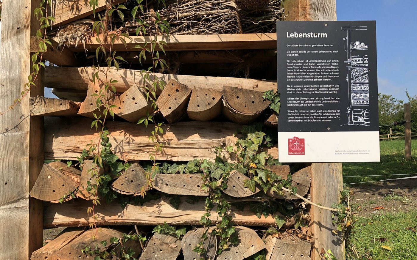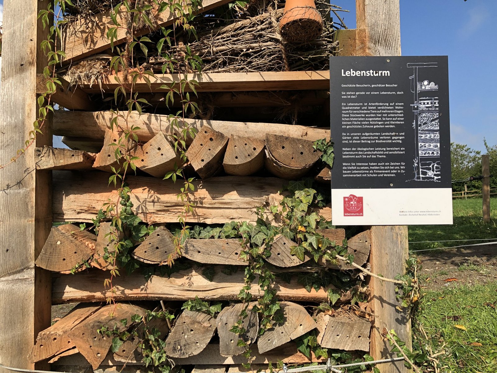 Der Lebensturm ist Artenförderung auf einem Quadratmeter. Er bietet verdichteten Wohnraum für verschiedene Tiere in unterschiedlichen Etagen. Zudem bereichert er das Landschaftsbild und sensibilisiert den Betrachter auf das Thema Ökologie und Biodiversität. Der Lebensturm dient als Symbol zur Erhaltung der biologischen Vielfalt. Insektensterben ist ein grosses Thema, so auch die Nützlingsförderung. An Wissen, wie man die Insekten gezielt fördert, mangelt es aber teils.