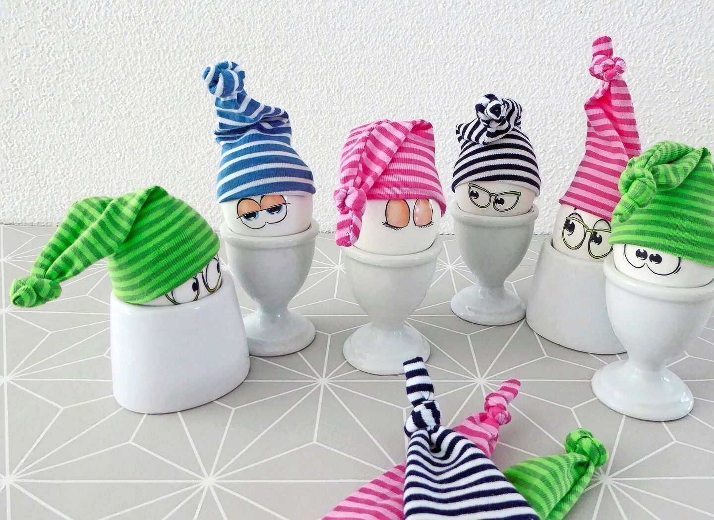 Die Eiermützen sind nicht nur praktisch, sondern auch ein hübsches Geschenk. Schliesslich steht Ostern bald vor der Tür und die Mützen passen in jedes Briefcouvert.