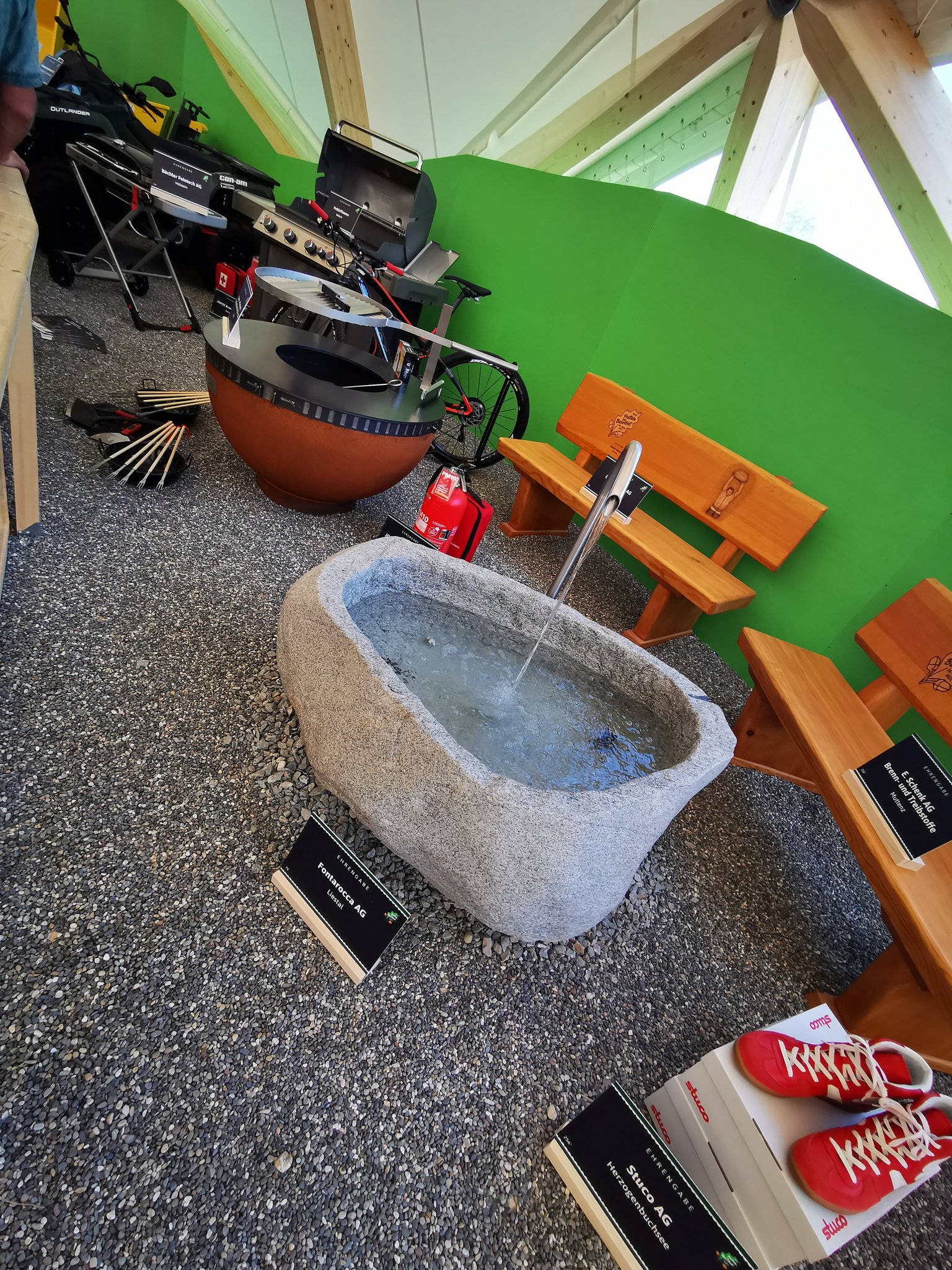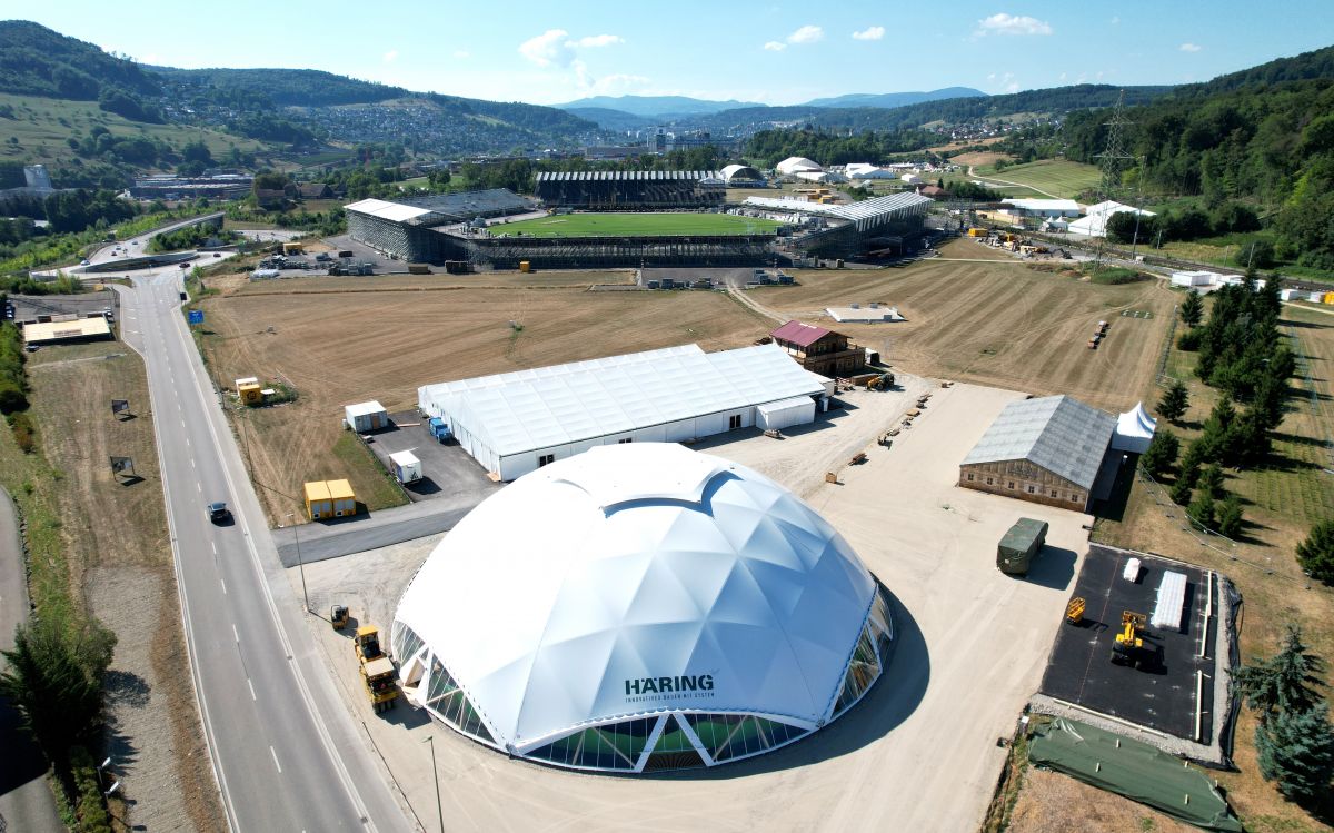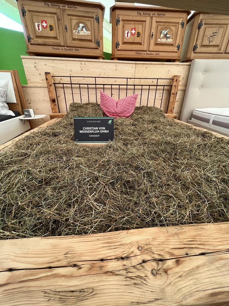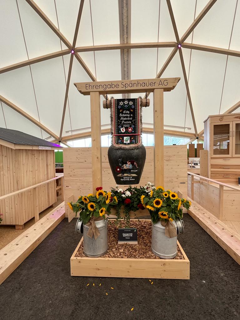 Am 12. August 2022 ist in Pratteln, im Kanton Basel-Landschaft, der Gabentempel für das Eidgenössische Schwing- und Älplerfest (ESAF) vom 26. bis 28. August 2022 eröffnet worden. Der Begriff Tempel ist für einmal nicht übertrieben. Der Kuppelbau hat laut Informationen der Organisatoren einen Durchmesser von 46 m, ist 14 m hoch, sowie aus 48 t Holz und 7,5 t Stahl gebaut. Aus dem integrierten Restaurant kann man hier zum Beispiel einen Findling mit Brett als Sitzbank, vier doppelseitig bemalte Treicheln, einen Whirlpool oder ein Motorrad der Marke Harley Davidson bestaunen.
