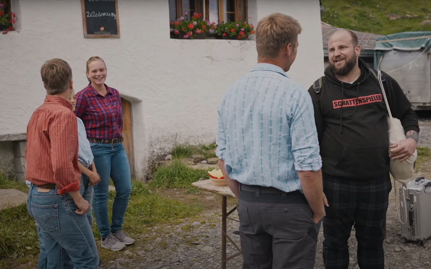 Eine Woche lang hat der Zürcher Barmann bei Toni und Marianne Hänni und ihren drei Kindern an der Lenk im Simmental mitgearbeitet. Auf 1068 m ü. M. war er gefordert – und manchmal etwas überfordert. So konnte er beim Melken brillieren und hatte sichtlich Freude am Kontakt zu den Tieren, beim Mähen im steilen Gelände er aber Mühe: Die Hitze setze Sandro Lötscher zu und er hatte Angst, samt Mäher abzustürzen.