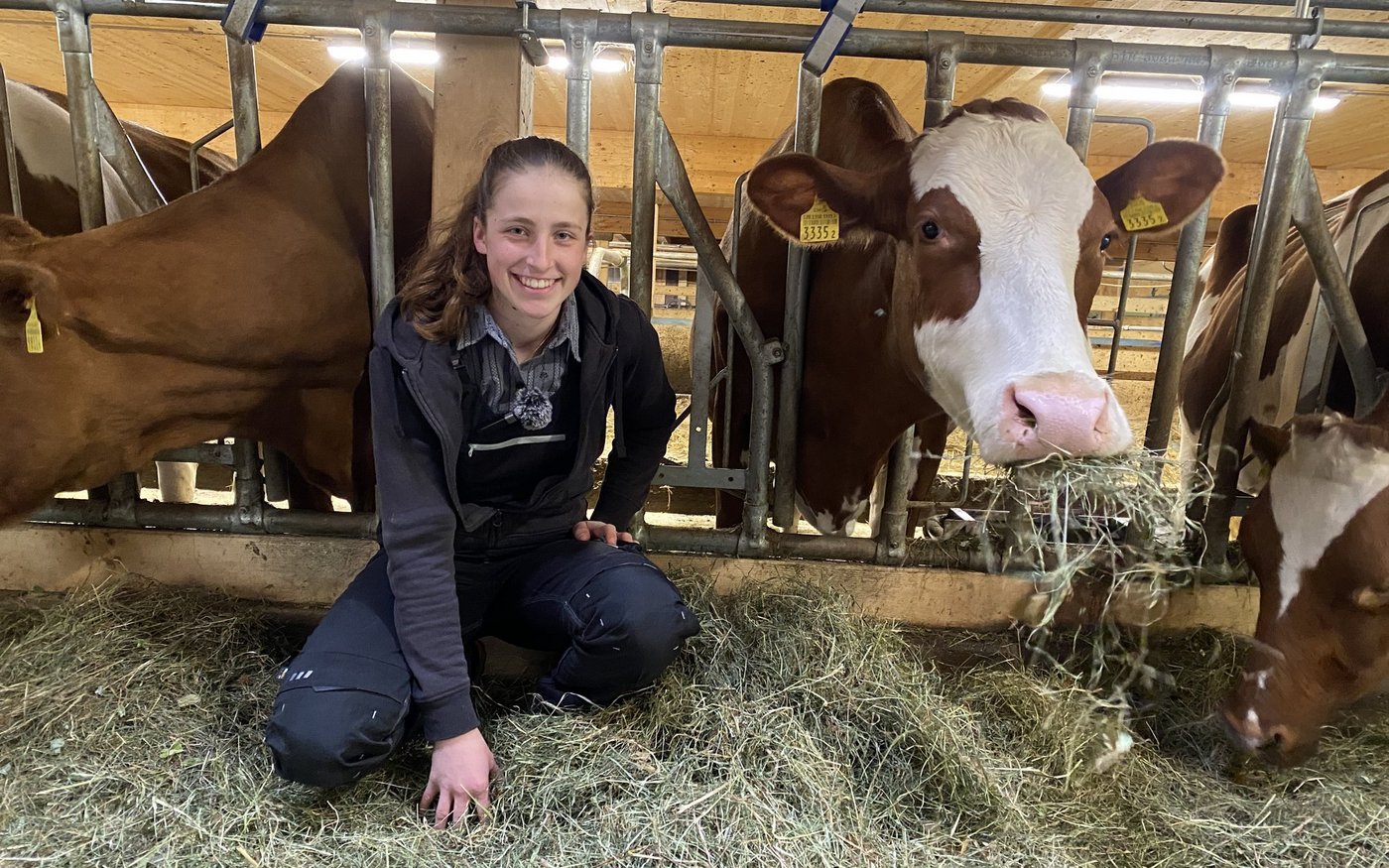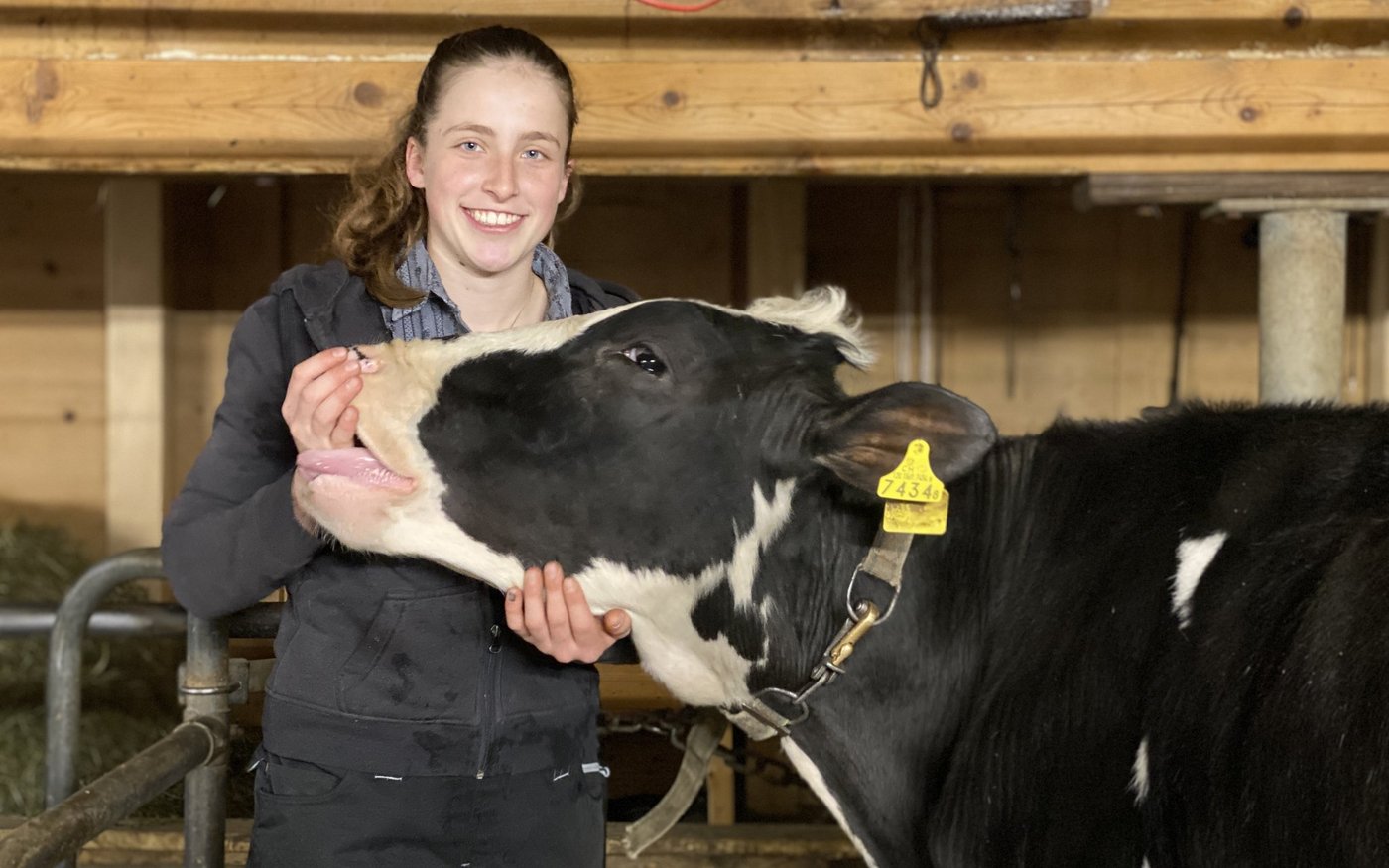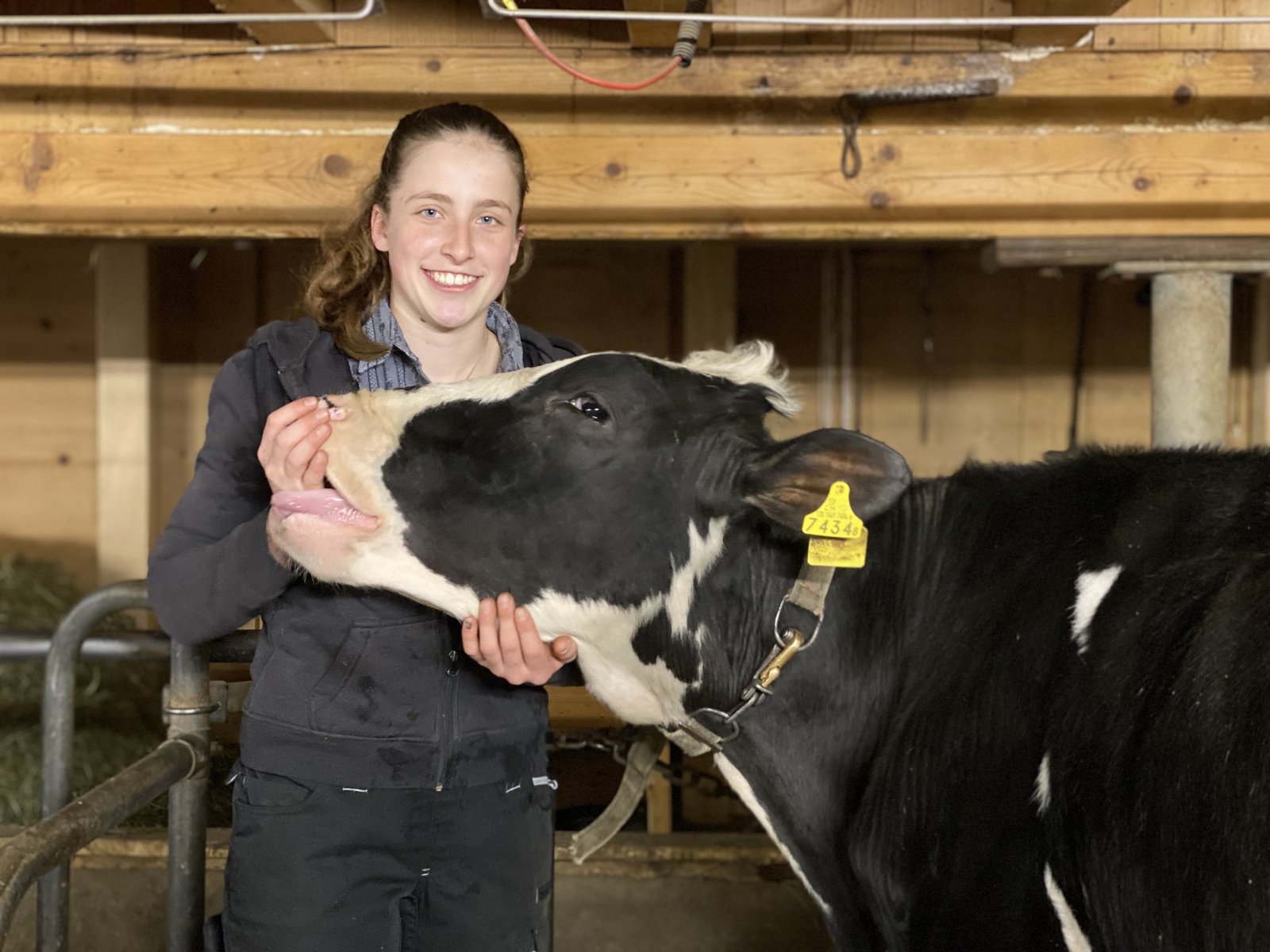 Mit sanftem Druck führt Eliane Blum die Bürste durchs Fell des Tieres vor ihr. Die 16-Jährige fühlt sich sichtlich wohl zwischen den gefleckten Leibern und auch die Kühe scheinen ihre Berührungen zu geniessen. «Wenn es mir nicht gut geht oder ich abschalten will, gehe ich in den Stall», erzählt sie und streichelt der Kuh die Flanke. Blum ist auf dem Bauernhof zuhause und sieht auch ihre Zukunft in der Landwirtschaft.