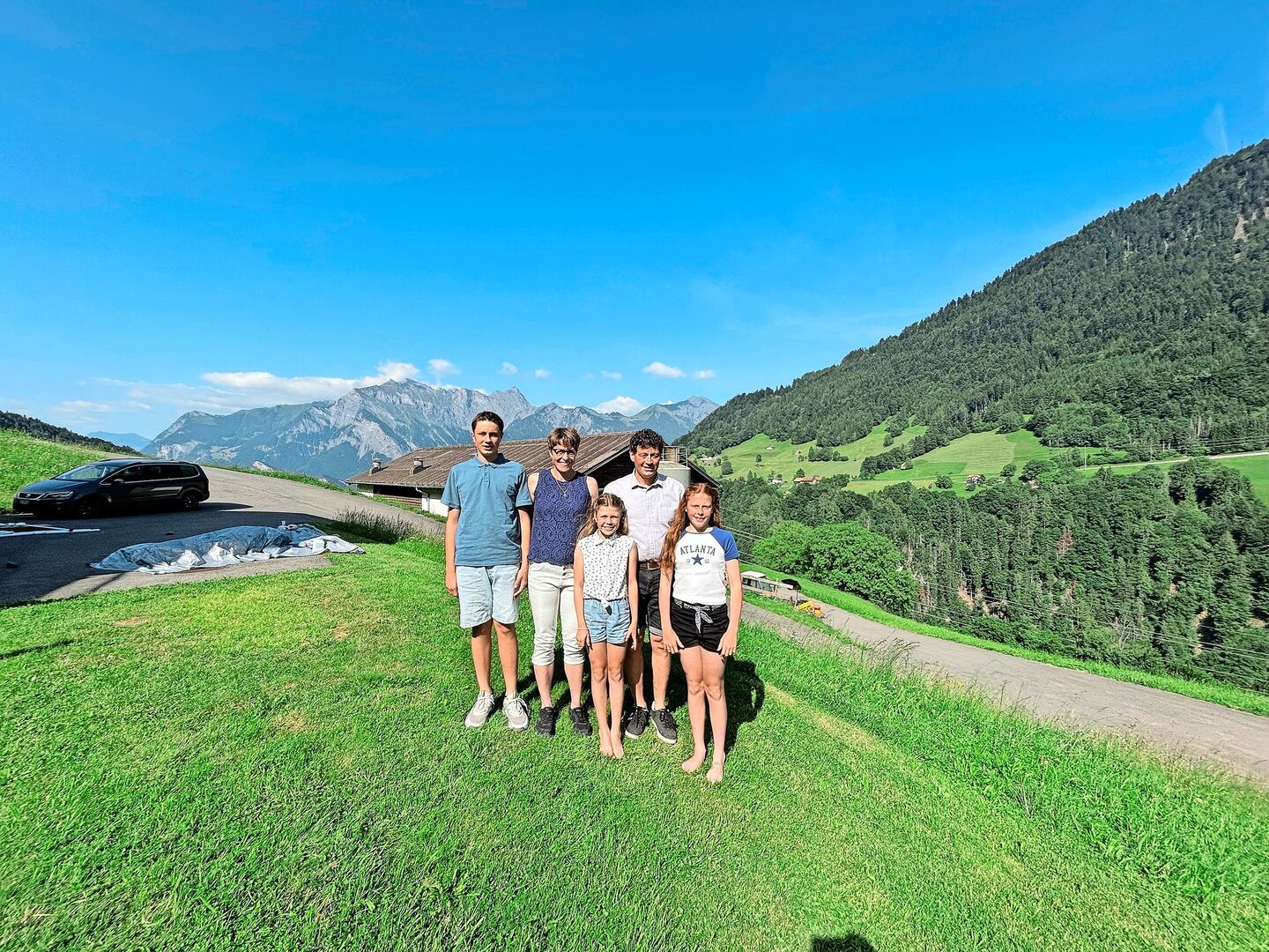 Es ist Feierabend. Ruedi Thomann sitzt mit Ehefrau Sandra und den Kindern Pascal, Nadine und Jasmin auf dem Gartensitzplatz. «Dafür hatten wir in den vergangenen Jahren wenig Zeit», sagt er und erklärt: «In der Regel sind wir von Mitte Mai bis Mitte September unaufhörlich am Heuen.» Dank der Schönwetterperiode seien sie Mitte Juni fertig geworden. Man geniesse die heufreie Zeit. Doch am 1. Juli ging es mit Heuen…