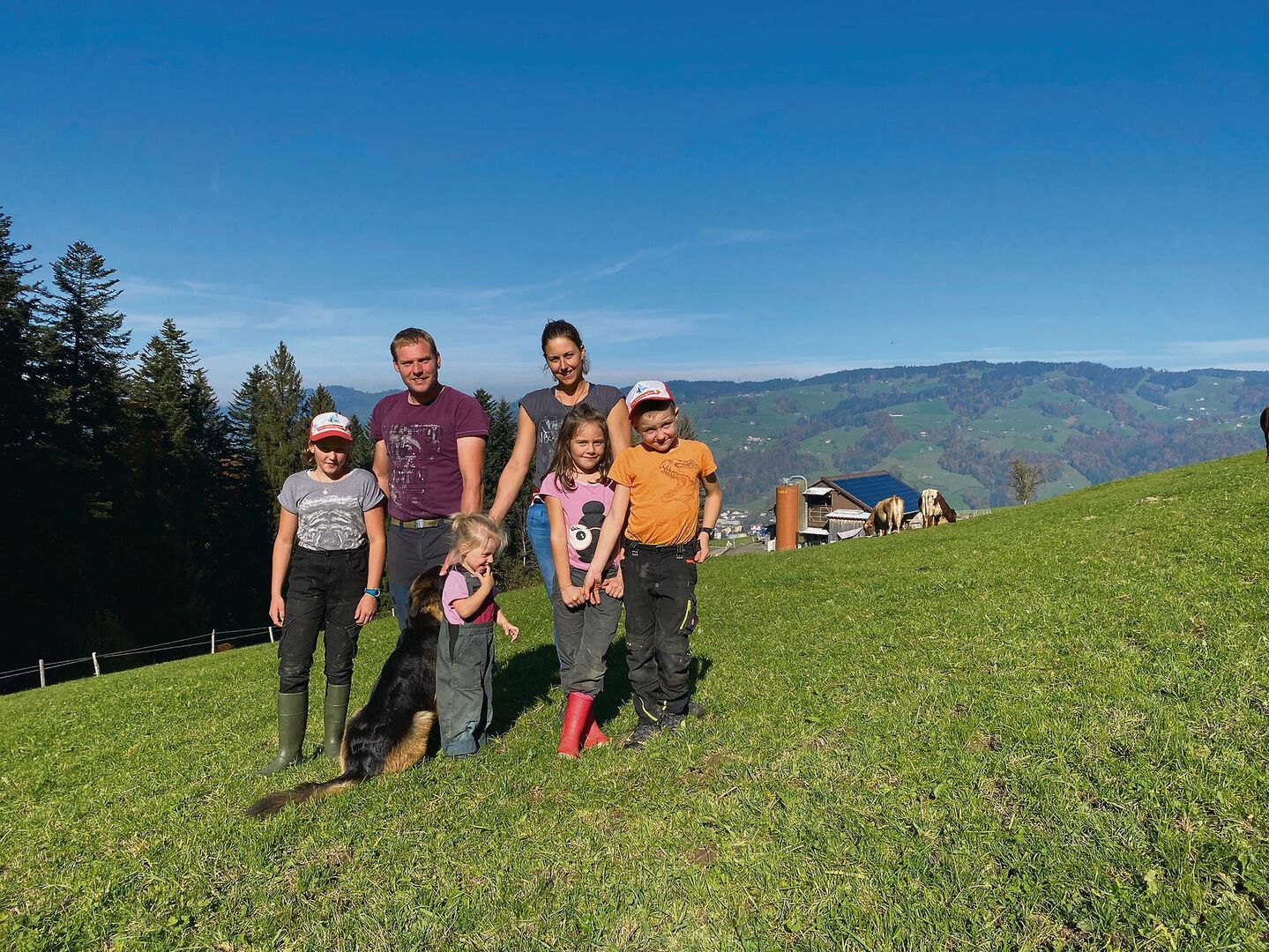 «Mamiiii …. !» «Lass ihn nicht raus …» «Darf ich …?» Es sind Schulferien. Vier Kinder und drei acht Wochen alte Welpen halten Sonja und Thomas Räbsamen an diesem sonnigen Herbstvormittag auf Trab. Dabei sind ihre Tage auch sonst gut ausgefüllt. Das Paar bewirtschaftet einen Bergbauernbetrieb im Weiler Brand-Nestenberg oberhalb von Ebnat-Kappel SG. Das ganze Land liegt in Bergzone 2 und 3. «Wir konnten den Betrieb…