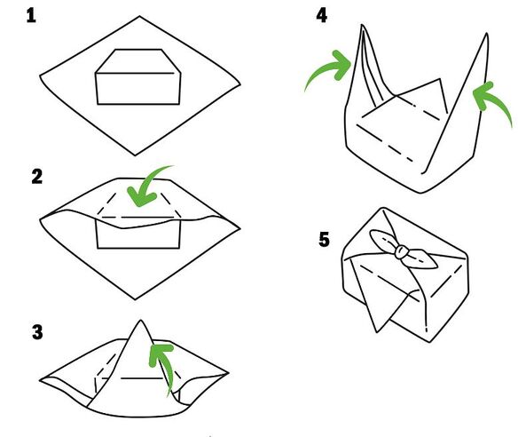 Zum Verpacken eignen sich jedoch auch Baumwoll- oder Leinentücher, Reststoffe von Nähprojekten, Stofftaschentücher, Stoffservietten oder nostalgische Seidentücher. Für grosse Geschenke darf es auch mal eine Tischdecke sein. Im Idealfall kann der Verpackungsstoff vom Beschenkten weiter verwendet werden.