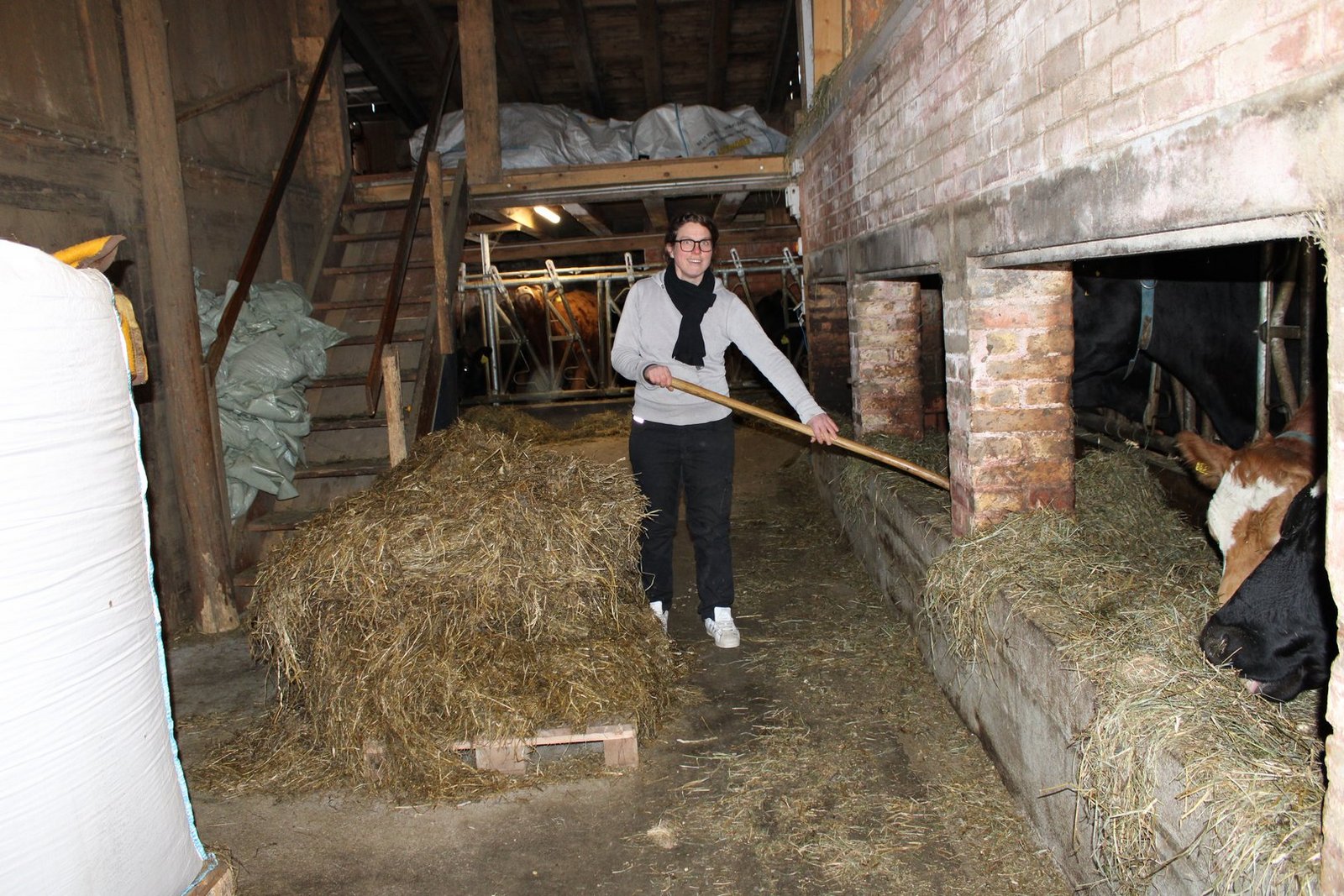 Nach der Schule absolvierte sie zuerst eine Lehre als Automechanikerin. Das technische Verständnis kommt ihr jetzt im Alltag zugute, auch wenn Traktorfahren nicht zu ihren Lieblingsbeschäftigungen gehört. Viel lieber sind ihr die Kühe. Im dazugehörigen Pachtbetrieb hat sie durch den Winter über zwanzig Aufzuchtrinder. Der Pachtbetrieb liegt etwas abseits vom Hof, so gibt die tägliche Stallarbeit im Winter viel zu tun.[IMG 4]