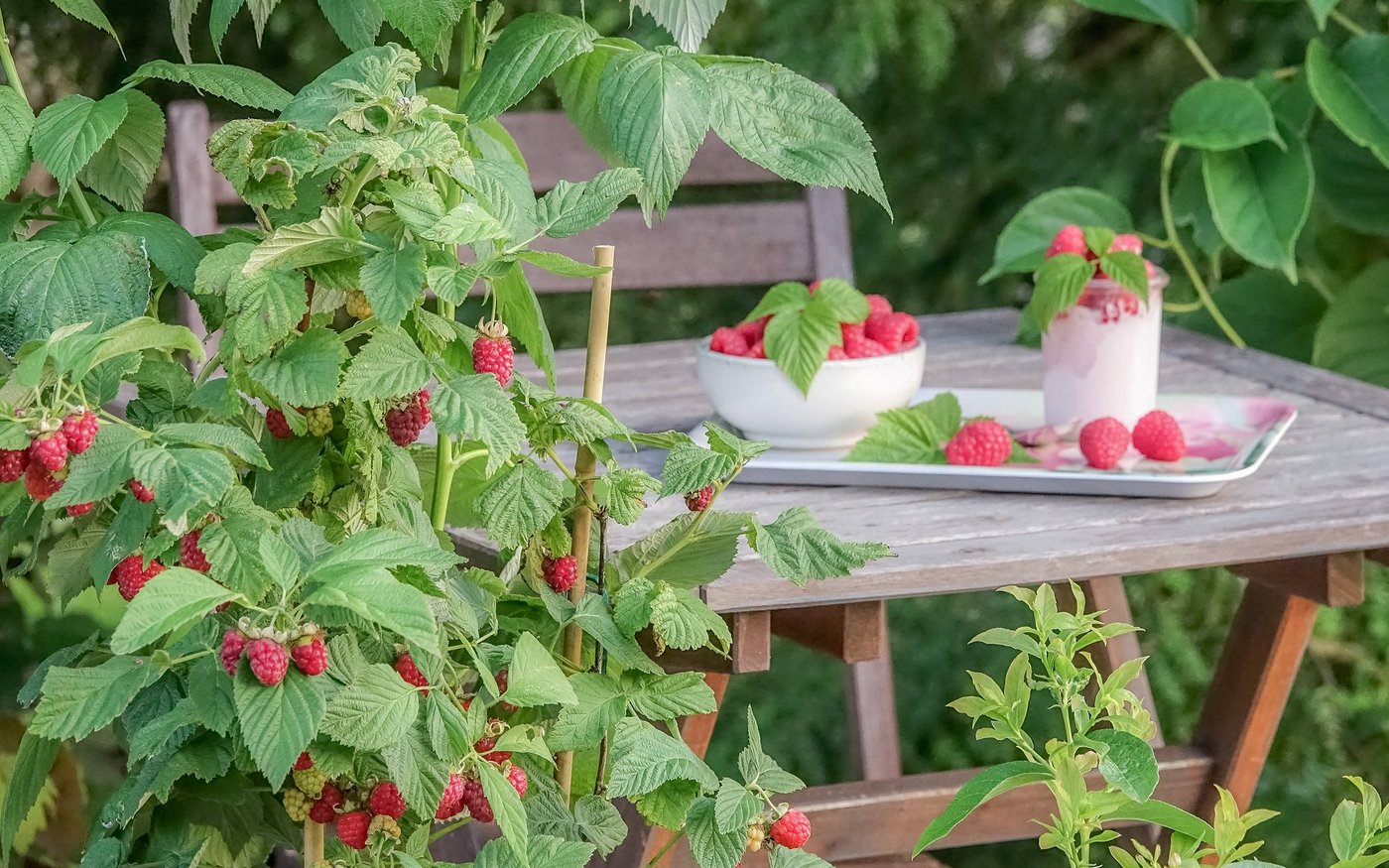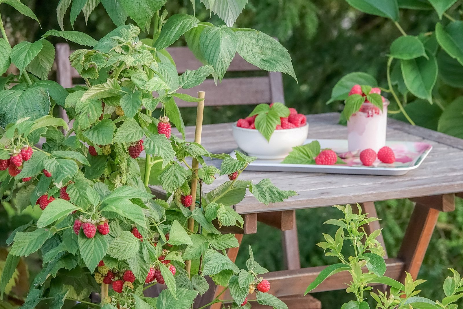 Spezielle Zwerghimbeeren wie die Sorte Rote Schwedin eignen sich sogar für die Topfhaltung auf dem Balkon oder der Terrasse. Sie wird maximal 1,2 Meter hoch und bildet sehr stabile Ruten aus. Deswegen benötigt sie keine Stützen. Auffällig an dieser Sorte sind die dunkelroten Triebe sowie das rot-grüne Laub. Damit macht sie auch optisch grossen Eindruck. Zur Erntezeit im Juli trägt sie zahlreiche, eher kleine, dafür umso süssere Beeren.