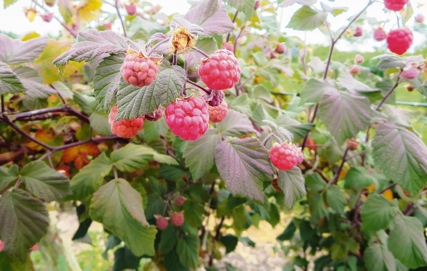- Herbsthimbeeren, deren Früchte ab August bis in den Oktober erntereif sind