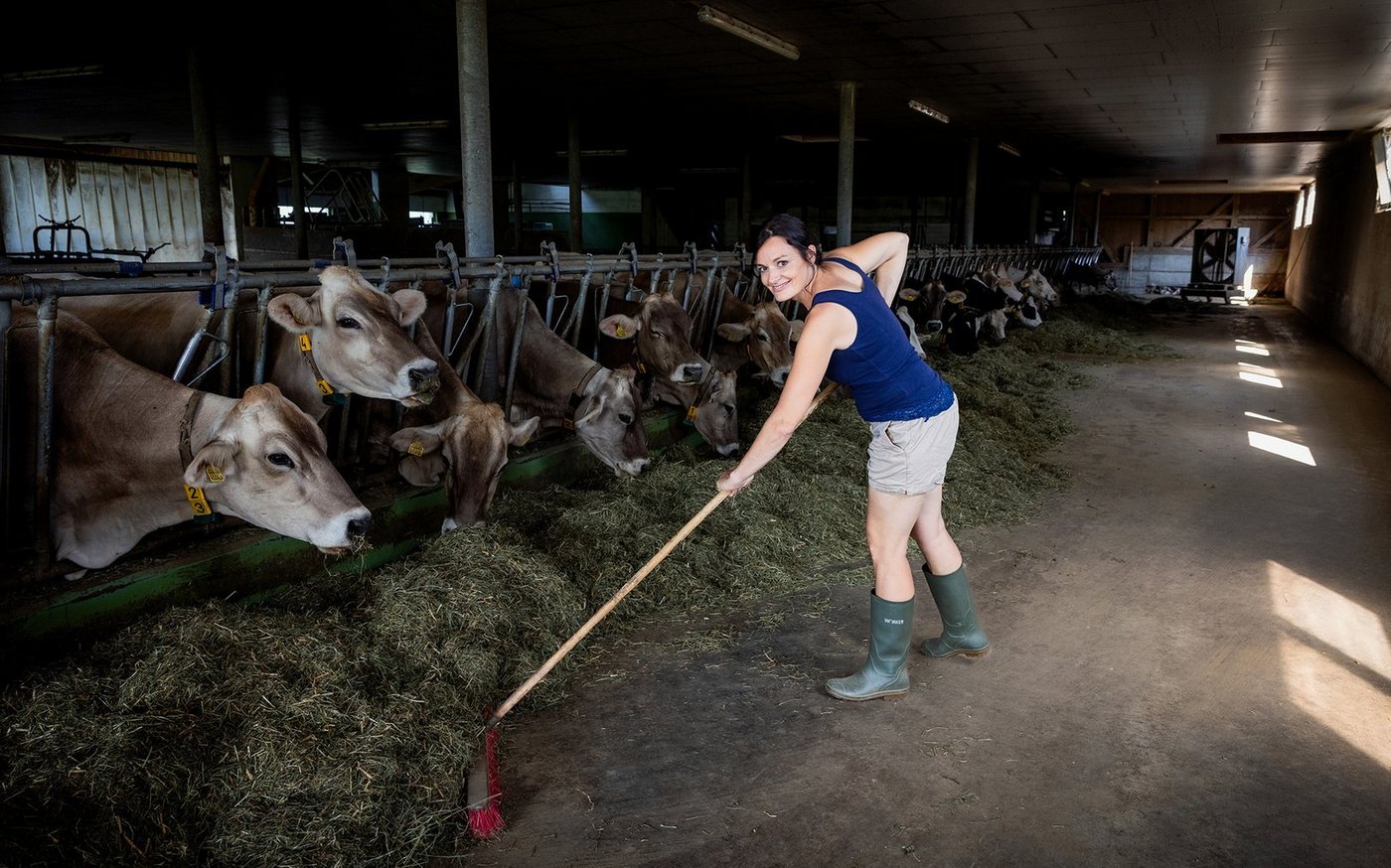 Auch heute gäbe es noch viel zu tun, sagt Irène Meier, doch es sei überschaubarer geworden. Sie kümmert sich auf dem Hof vor allem um die Rinder und die Hühner, hilft bei den Feldarbeiten mit und arbeitet mit ihrem Mann zusammen, wenn die Familie Wochenenddienst hat. «Am Samstag- und Sonntagabend übernehmen die Kinder meinen Helferdienst», erzählt sie. «So verlieren sie den Bezug zum Hof nicht.» Und der Haushalt? Irène Meier lacht: «Der kommt manchmal etwas zu kurz. Gut gibt’s in der Schule Ferien – dann versuche ich nachzuholen, was liegen geblieben ist.»