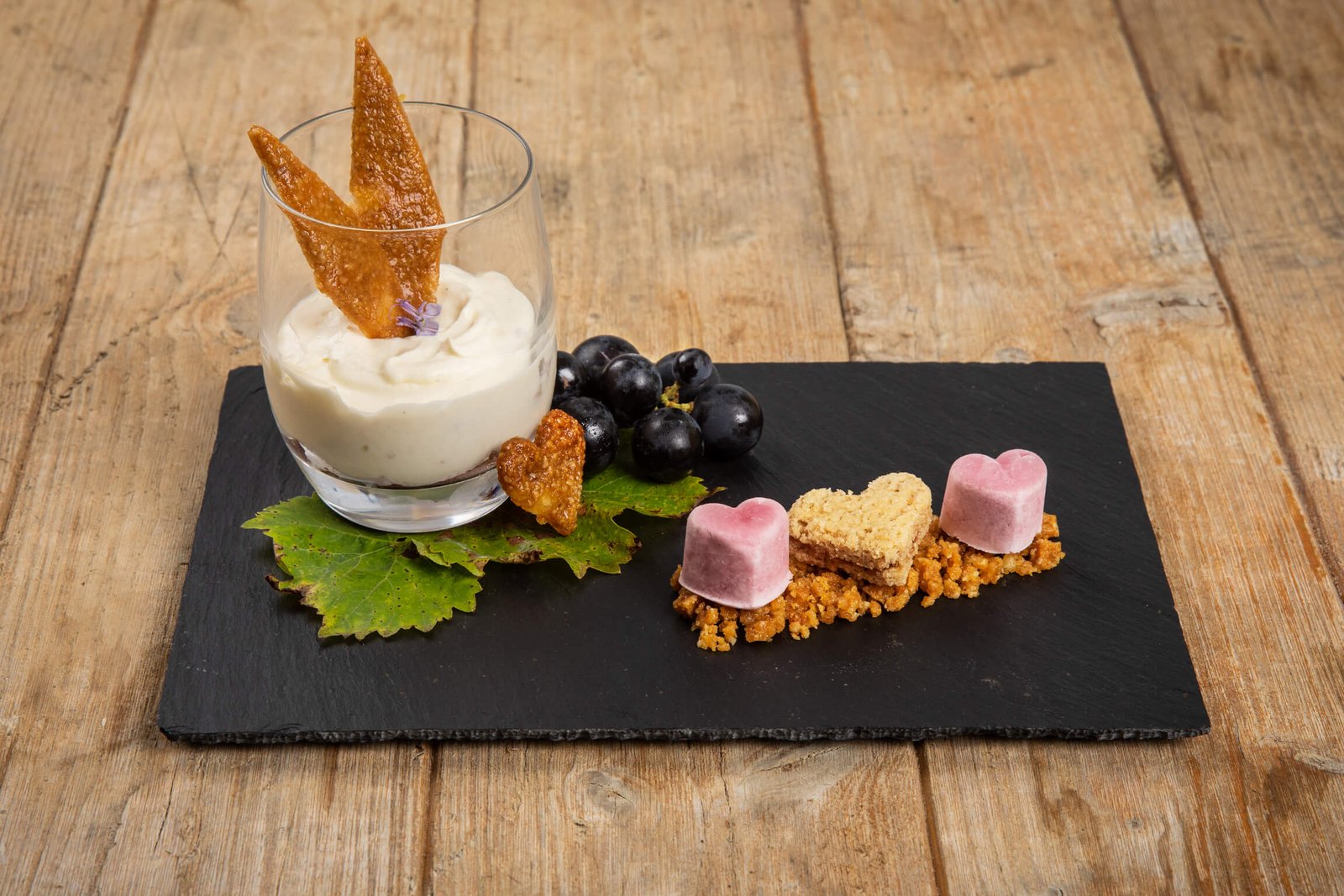 - Dessert: Traubentiramisù, dazu eine Traubenglace und Schwiegermutterchräpfli