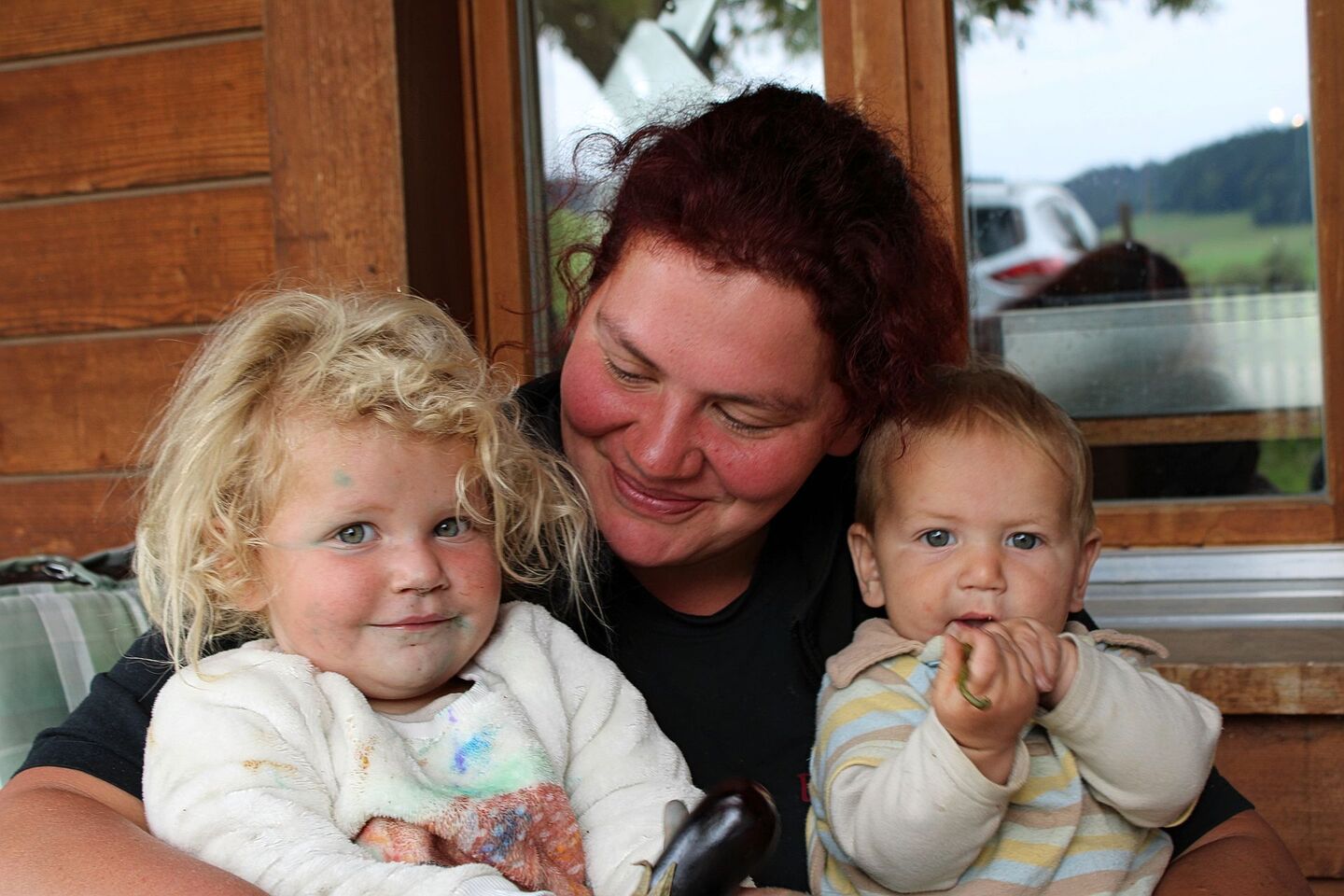 Kaum hat Nadine Hofstetter vor dem Bauernhaus in Schüpbach BE Platz genommen, stürmt ihre Tochter Ronja zu ihr. Die Zweijährige war mit der Grossmutter am Auberginen ernten und bringt nun ihrer Mutter begeistert einige Mini-Früchtchen, während es sich der sieben Monate alte Joel auf Nadine Hofstetters Schoss bequem macht. Sie wirkt voller Energie und gleichzeitig sehr entspannt. Hier pulsiert das Leben, hier wird…