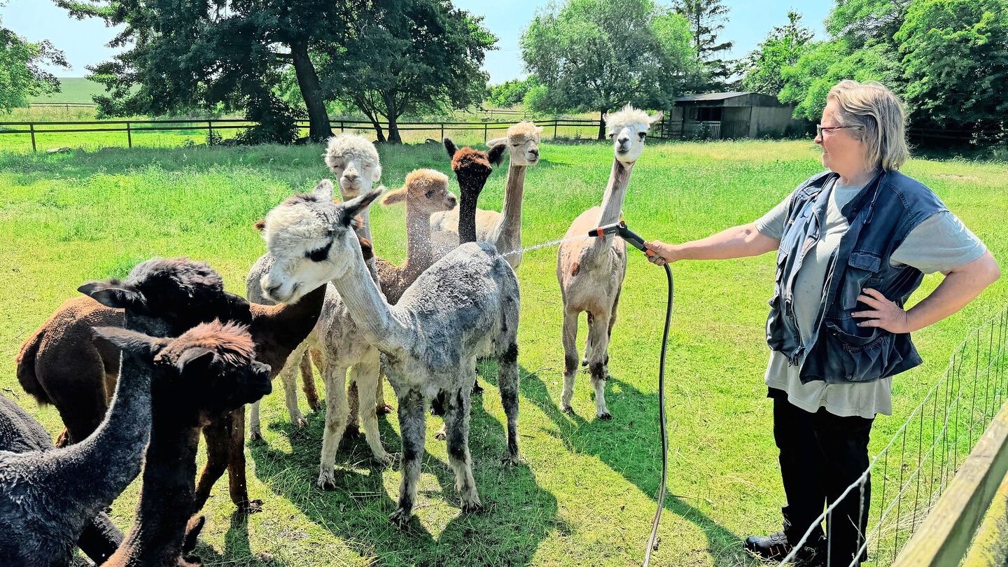 Nicht nur Grossbetriebe prägen die schwedische Landwirtschaft. Mit «Grüessech» begrüsst uns der aus dem bernischen Stettlen ausgewanderte Paul Gerber. Mit seiner Frau Ann Marie hält er Alpakas und verkauft Zuchttiere und Wolle. Insgesamt bewirtschaftet der Nebenerwerbsbetrieb 14 ha landwirtschaftliche Nutzfläche und 300 ha Wald.