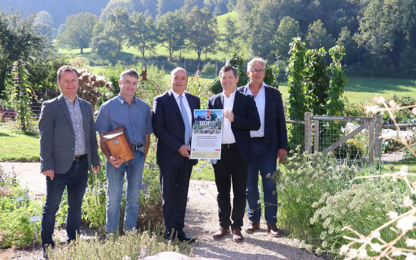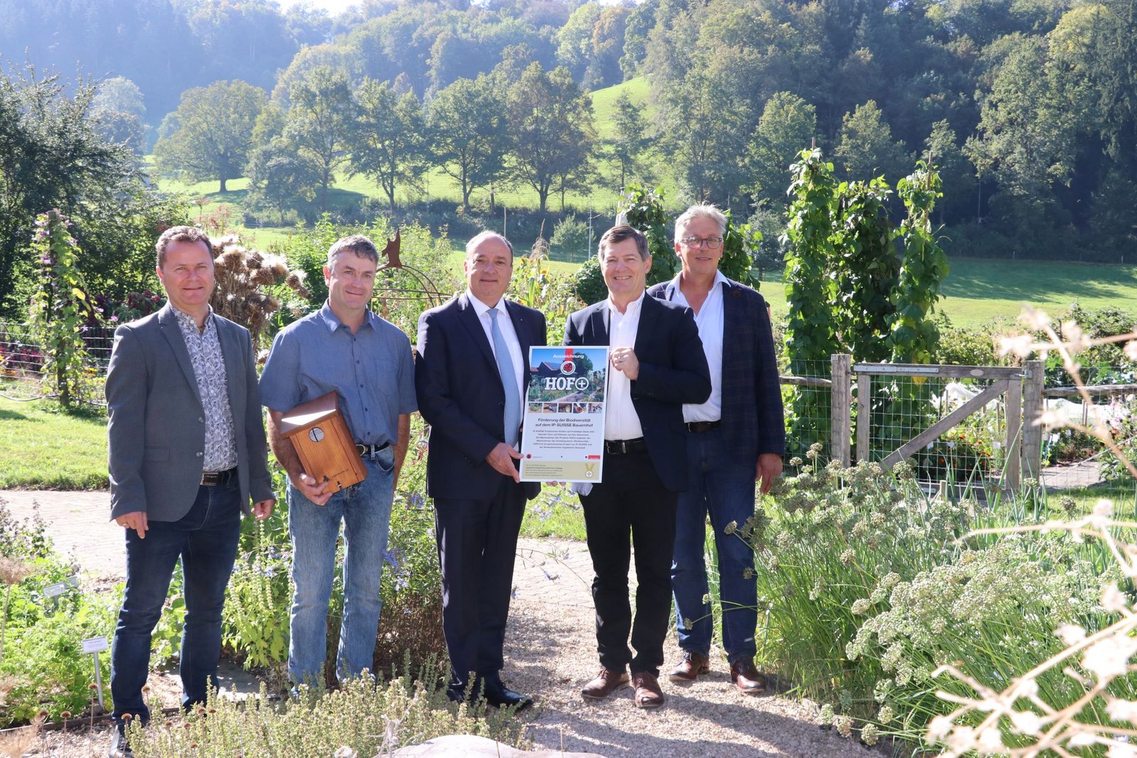 Das Aargauer Landwirtschaftliche Zentrum hat sich mit dem Punktemaximum Gold verdient. Die Schule habe Vorbildfunktion und sei ein Multiplikator, erklärte Liebegg-Direktor Hansruedi Häfliger bei der Übergabe der «Hof+»-Tafel durch IP-Suisse-Geschäftsführer Christophe Eggenschwiler am Donnerstag. Die Liebegg stehe für eine innovative und nachhaltige Landwirtschaft, freute sich Landstatthalter Markus Dieth, die kantonale Landwirtschaftsstrategie 2030 werde hier direkt umgesetzt.
