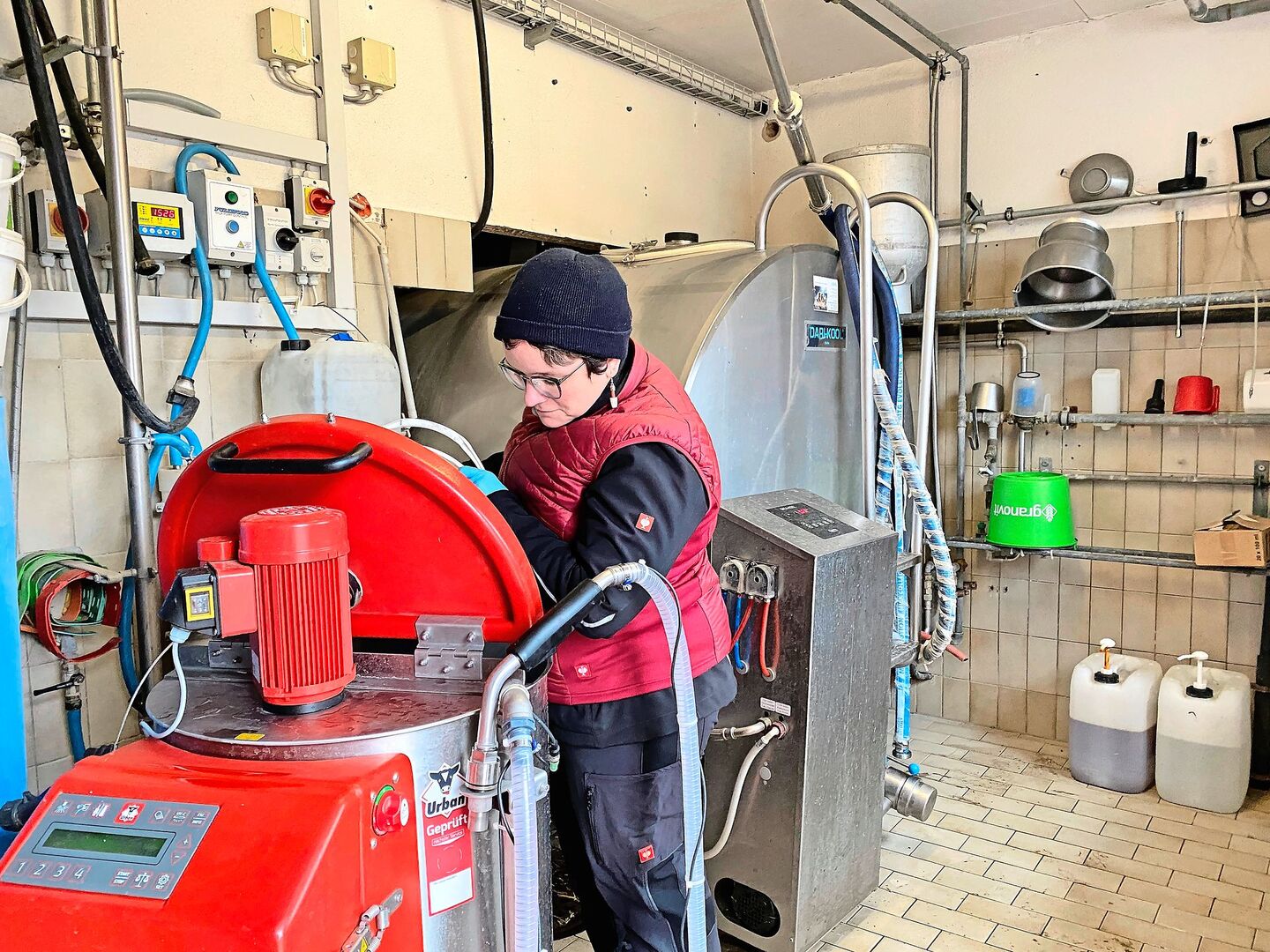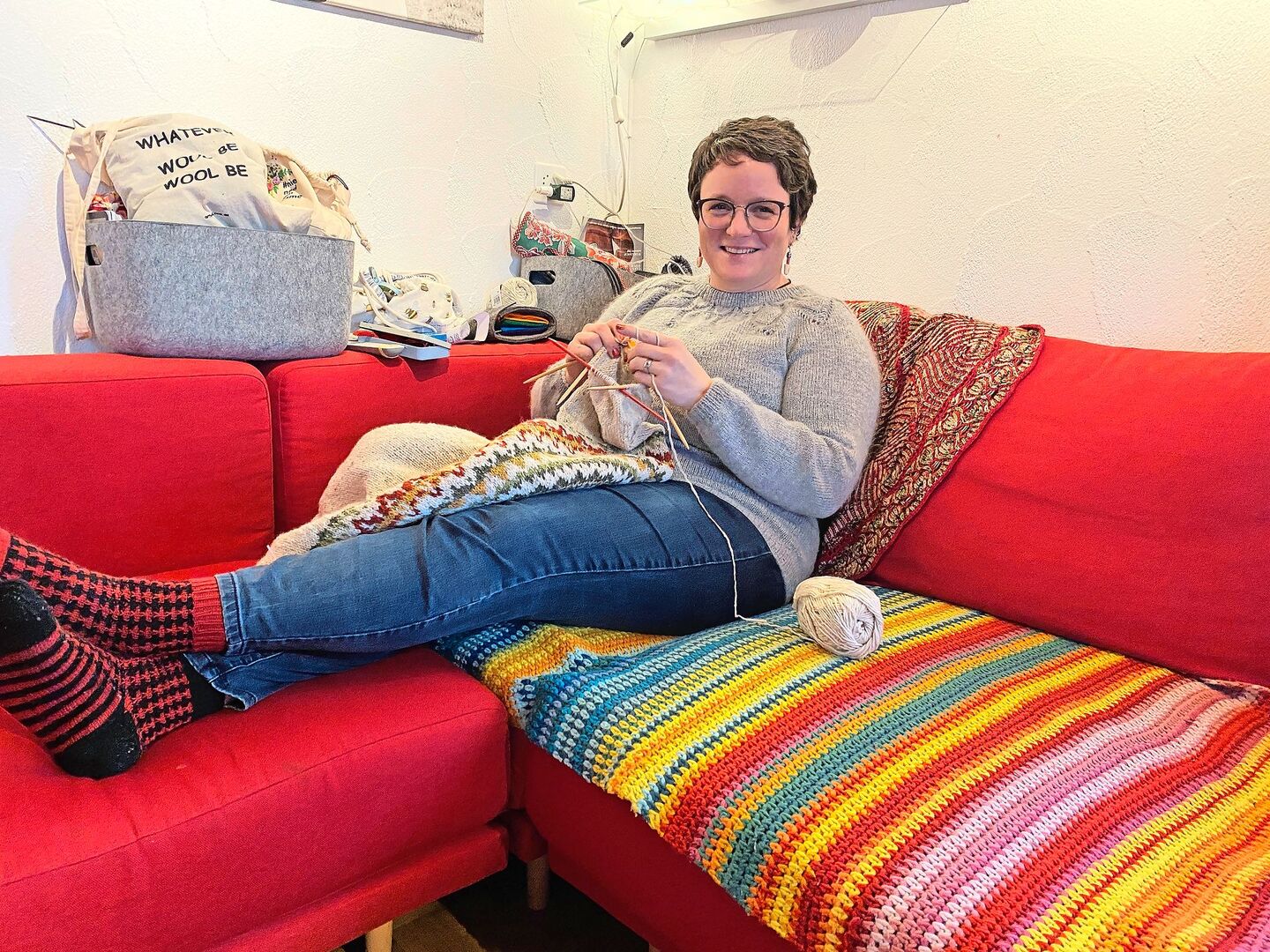 Neben der Wohnungsklingel hängt ein gehäkeltes Türschild mit den Köpfen aller Bewohner. Im Wohnzimmer ist ein Teil des roten Sofas mit Strickdecken und Strickprojekten belegt. «Die Ecke ist mein Reich», sagt Judith Dörig. «Ich arbeite derzeit an sechs Lismeten gleichzeitig.» Sie trägt selbstgestrickte, zusammenpassende, aber verschiedenfarbige Wollsocken und einen trendigen Top-Down-Pullover, der an einem Stück von…