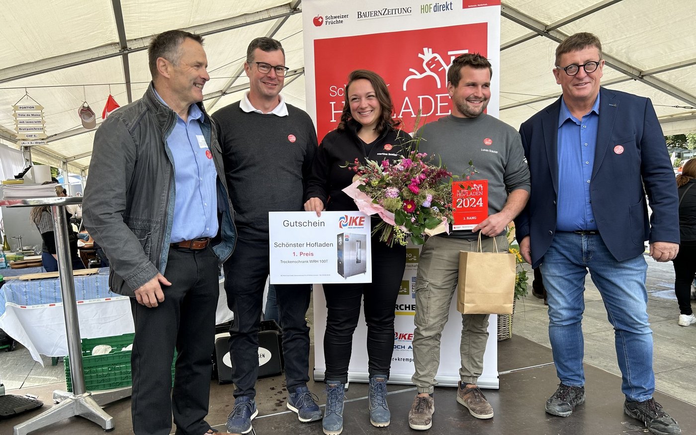 Eine besondere Ehre bekamen Astrid und Vinzenz Bütler zu teil. Ihr Hofladen in Wädenswil schwang im Publikums-Voting, das die BauernZeitung organisiert hatte, obenauf. Sie gewannen den Publikumspreis. Aber nicht nur: Bütlers erhielten auch den Spezialpreis des Schweizer Obstverbands für das beste Obst, die vielfältigste Auswahl und einen wunderschönen Hofladen.