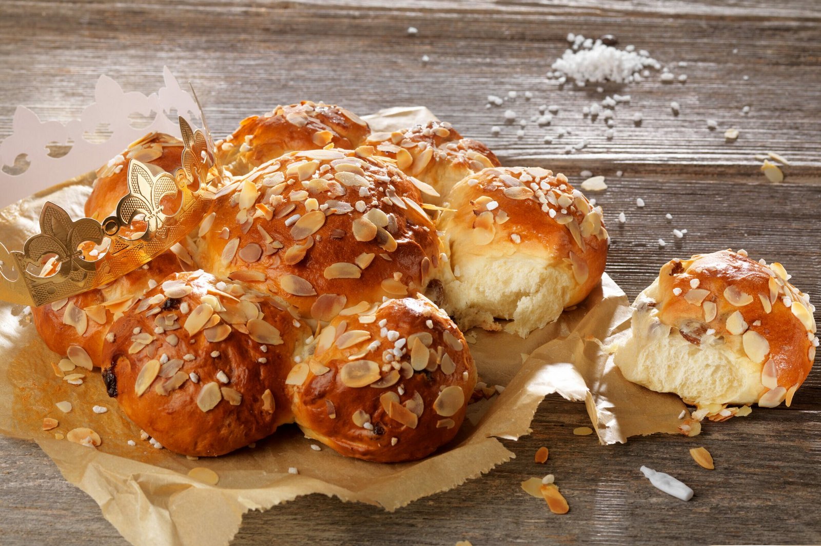 Dreikönigskuchen mit Emmentaler Dieses Rezept kreierte Zoe Torinesi für Emmentaler Swizterland. Die Moderatorin und Rezeptautorin amtet als Botschafterin für die organisation. Material und Zutaten für acht Stück Backpapier Königinnen- oder Königsfigur 400 g Weissmehl plus etwas mehr zum Arbeiten 2 ¼ TL Trockenhefe 1 TL Zucker 240 ml Vollmilch, lauwarm 2 TL Salz (ca. 10 g) 2 Eier 50 g gewürfelte Butter,…