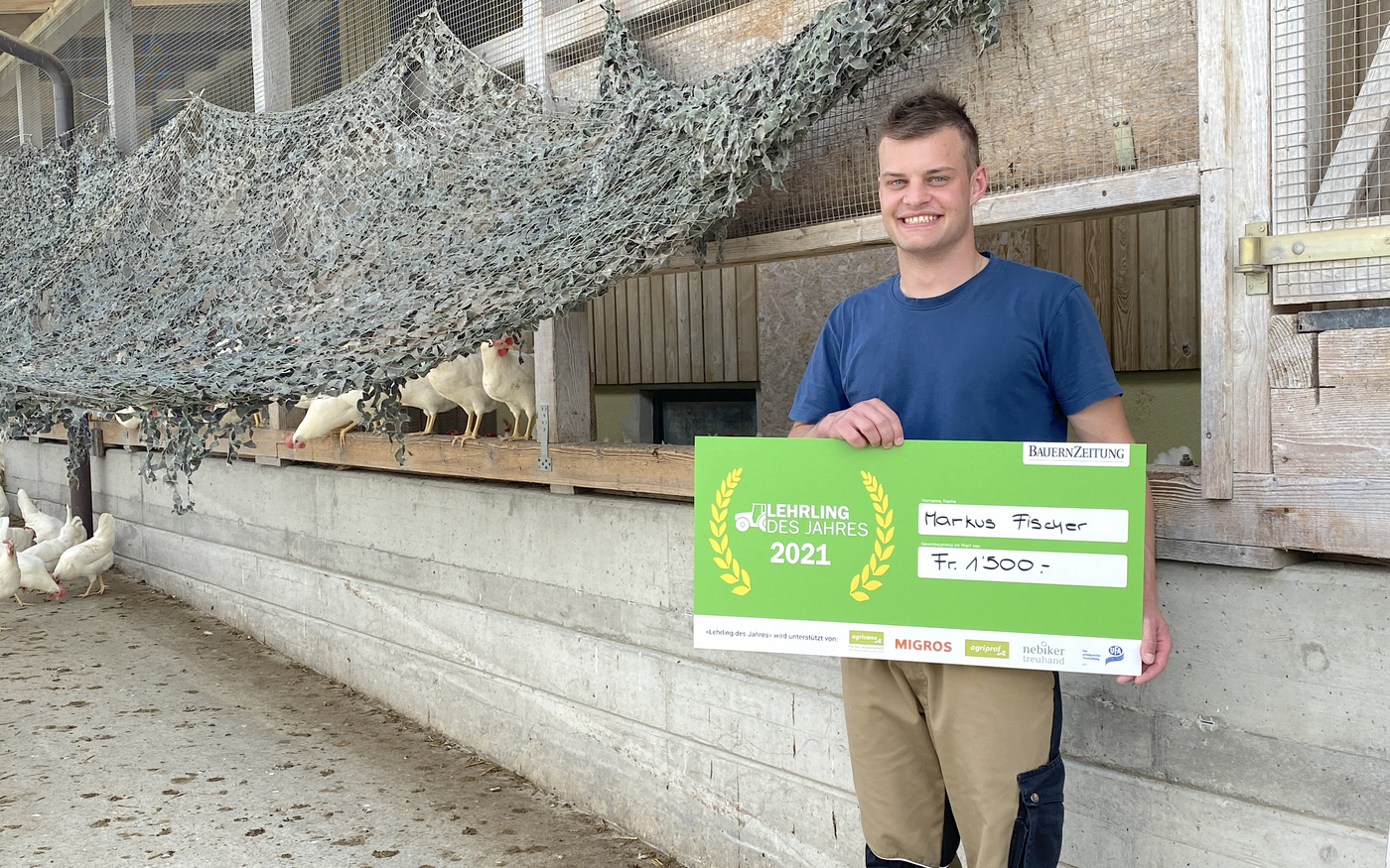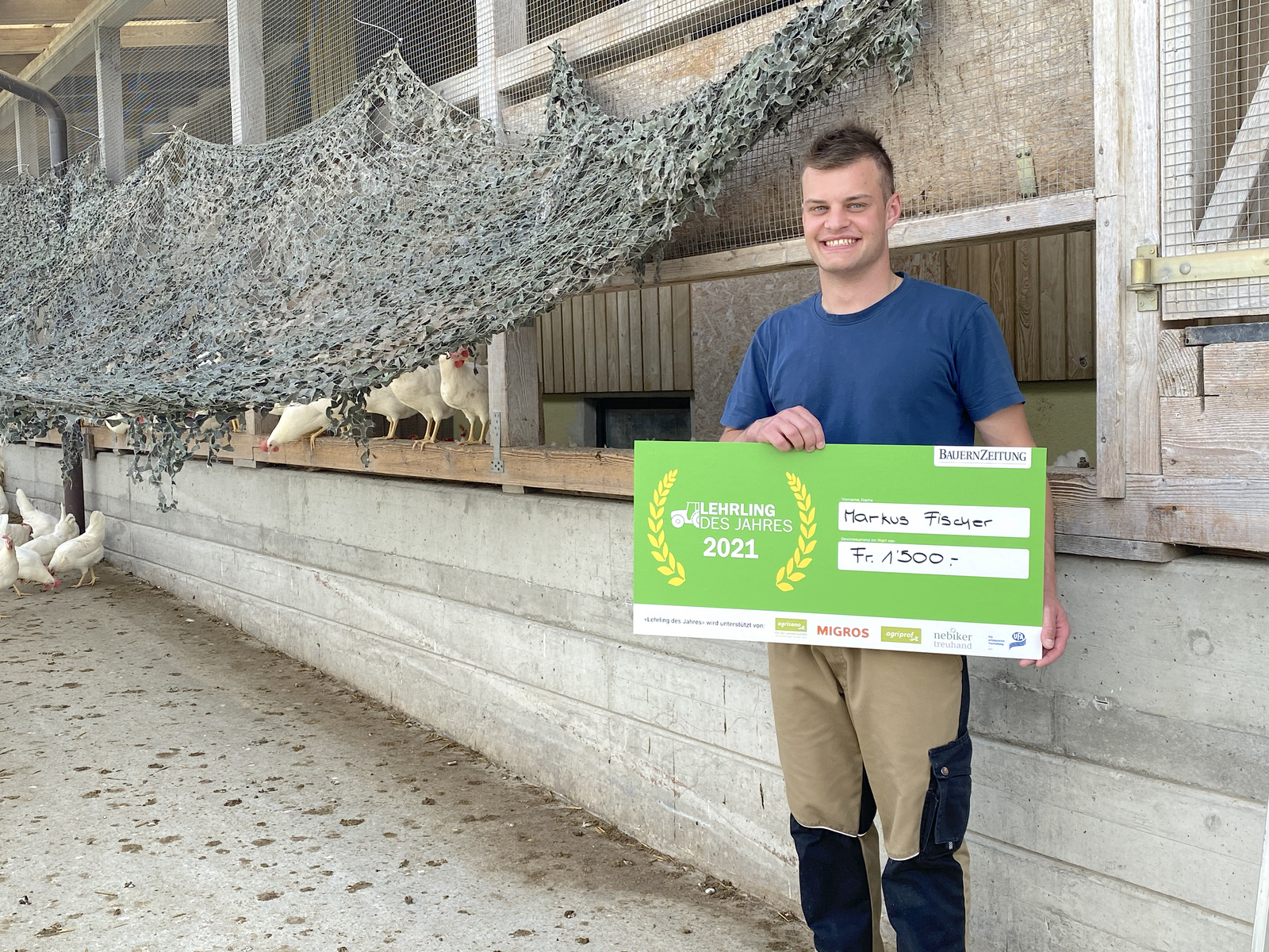 Markus Fischer: Ich bin ja aktuell im dritten und letzten Lehrjahr in meiner Ausbildung zum Geflügelfachmann. Dass ich im Wettbewerb gewonnen habe, hat mich sehr gefreut! Der Sieg kam sehr überraschend. Die Chance, dass ich gewinne, war ja da, weil ich bei den letzten zehn Kandidaten und Kandidatinnen war. Aber dass es am Schluss grad reicht für den Sieg, hätte ich nicht gedacht.Das Schönste an der ganzen Sache war, wie viele Leute mich auf das angesprochen haben und dass ich durchs Band nur positive Reaktionen erhalten habe. Die Leute hatten Freude.