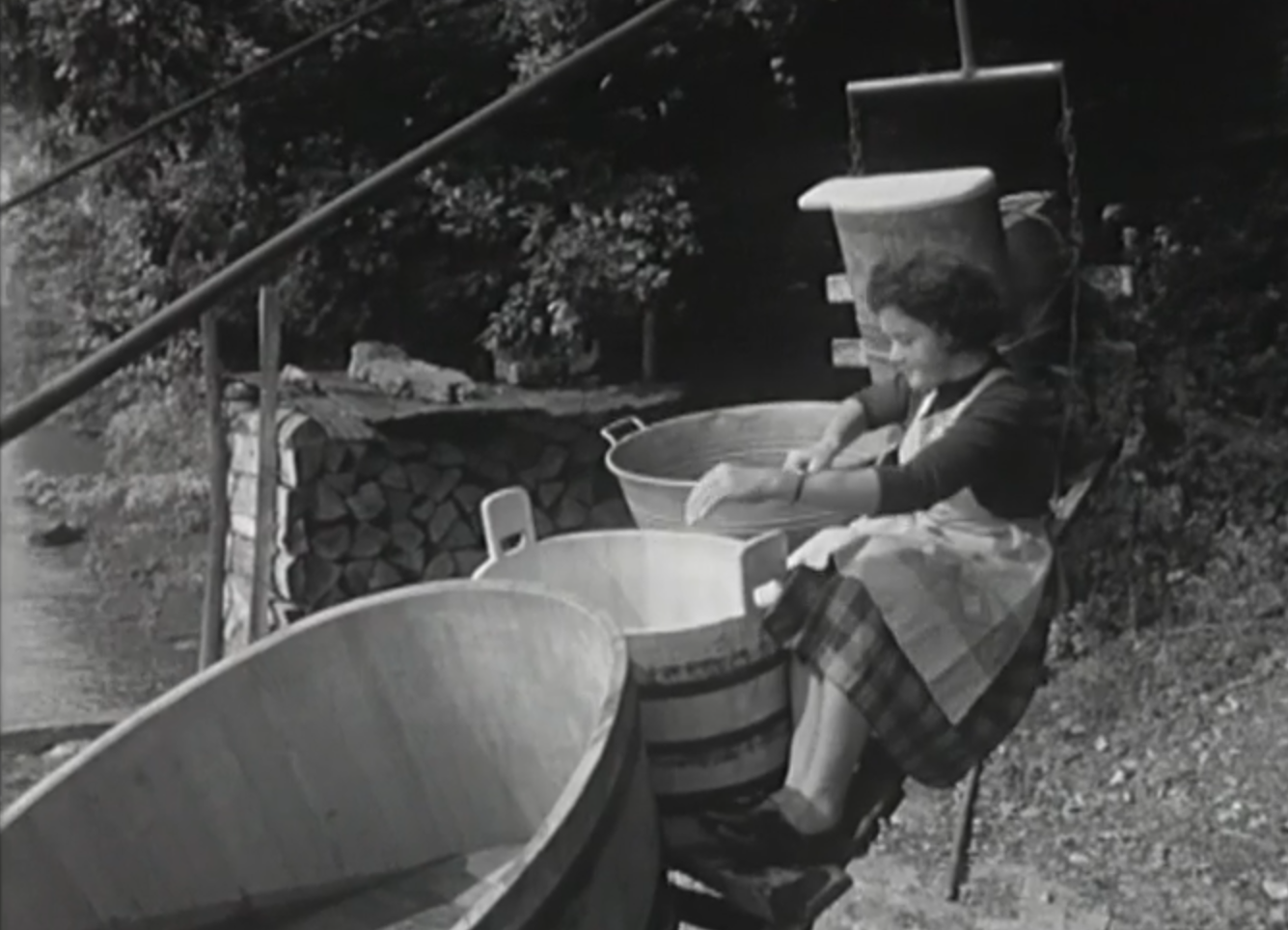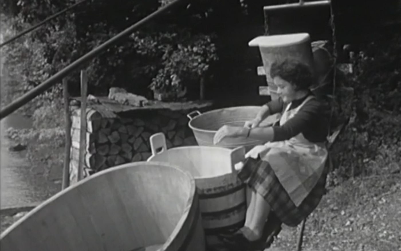 Er habe ein Bähnli bis zum Seeufer gebaut, mit dem er das Wasser «ring uefenäh» könne, erklärt der Sprecher in der SRF-Archivperle. Im Video ist zu sehen, wie eine Frau mit einem Kessel Wasser aus dem See in eine Wanne schöpft, die – augenscheinlich gänzlich ungesichert – auf dem Lattenrost des Bähnlis steht. Zum Schluss steigt sie selbst mit auf und entschwindet ruckelnd durch die Baumkronen, wobei einige Liter Wasser überschwappen.