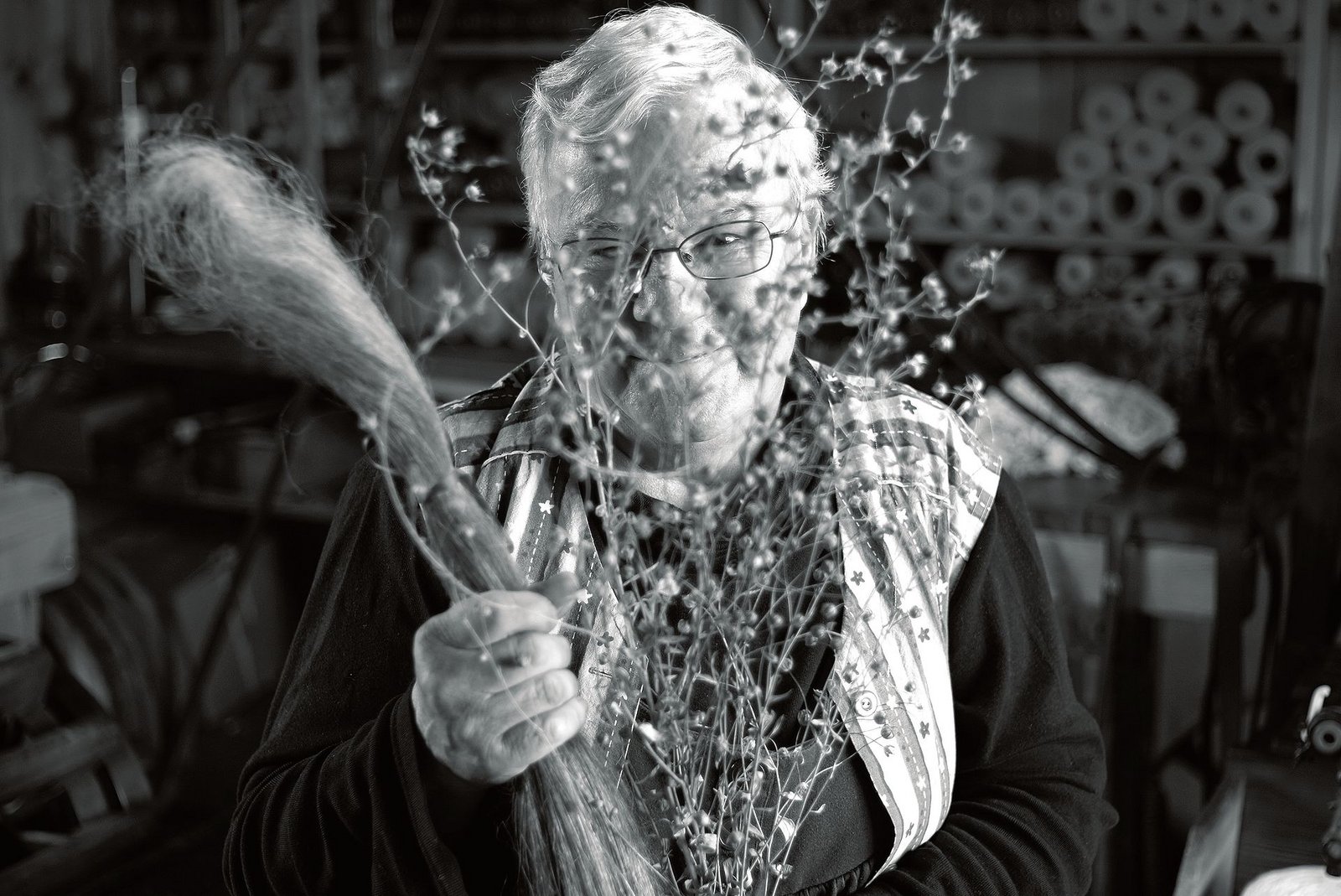 Die Wintersonne dringt durch die Apfelbäume in das Haus, welches Kapfhüsi heisst. Sonnenlicht, das von silbernem Haar, Flachs und Leinen reflektiert wird. Und in dieser Dämmerung das Geräusch von sich kreuzenden Fäden, so wie sie es in dieser Familie seit Generationen tun.