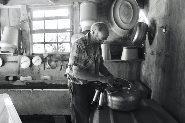 Münchi Hänsu, benannt nach dem Münchigraben, der in die Emme mündet, geht im Halbdunkel des Stalles mit seiner alten Melkmaschine aus dem Jahr 1979 von Tier zu Tier. «Diese sollte im Ballenberg sein», sagt er. Seine Wasserbüffel, die Zebus, Kühe und gescheckten Pferde warten auf ihn. Welches sein Lieblingstier sei? «Wenn der Wasserbüffel mich mit seinem kraftvollen Schwanz schlägt, dann ist er definitiv nicht mein Liebling», meint er.