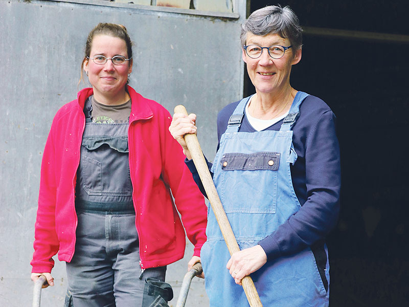 «Zurück auf Feld eins», schrieb sie in ihren Landfrauen-Chat. Von diesen Frauen kam schliesslich ein entscheidender Tipp, der die Betriebshelferin Jasmin Oehrli auf den Hof brachte. «Ja, das kann ich», sagte die Landwirtin nach einer Stallbesichtigung und kniete sich in die Arbeit. Drei freie Tage hatte sie seit Weihnachten, die körperlich schwere Arbeit geht an die Substanz. Aber auch sie lässt den Kopf nicht hängen. Es «giget» zwischen den beiden Frauen. Munter erzählen sie Episoden aus ihrem Alltag und man kann sich lebhaft vorstellen, wie die beiden Leichtgewichte beispielsweise mit einer widerspenstigen Rundballe gekämpft haben.