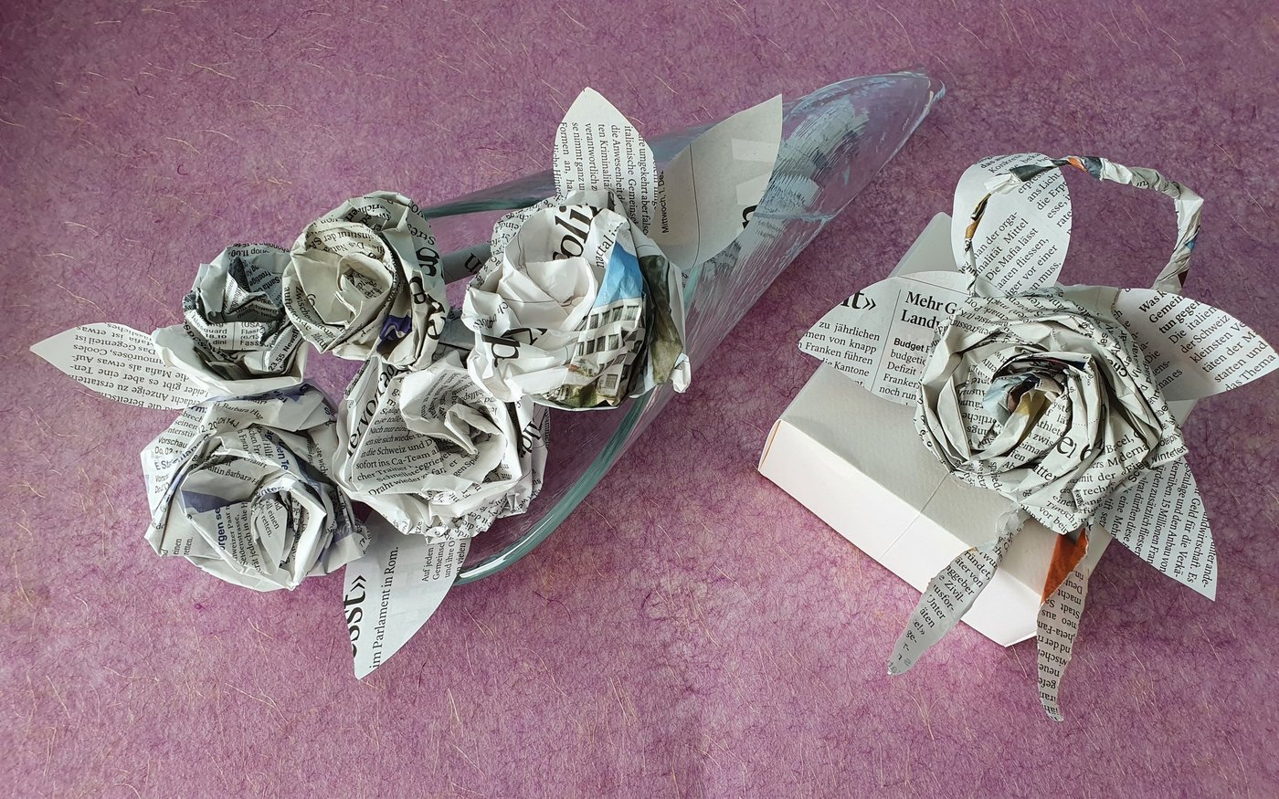 Sie welken nicht. Sie blühen auch bei Minustemperaturen. Und ihre Herstellung macht Spass: Rosen aus Zeitungspapier. Statt also die fertig gelesene BauernZeitung einfach ins Altpapier zu werfen, kann man daraus eine kreative Dekoration für den Wohnbereich oder für Geschenkverpackungen basteln. Dazu braucht es nur einige Zeitungen, etwas Leim und den richtigen Dreh. [IMG 1] Zeitungspapier vorbereiten Eine Zeitung…