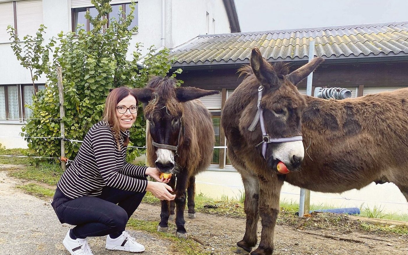 Pedro ziert sich. Misstrauisch äugt er aus dem Stall in den Nebel. «Los, komm doch, dann kriegst du auch einen Apfel», lockt Sandra Stadler. Nur zögerlich trottet der Esel ins Tageslicht, während seine vierbeinige Partnerin, Eselin Pina, ihren Früchte-Znüni schon fast vertilgt hat. Die Esel Pedro und Pina leben auf dem Versuchsbetrieb für Obstbau in Güttingen, der zum landwirtschaftlichen Bildungs- und…