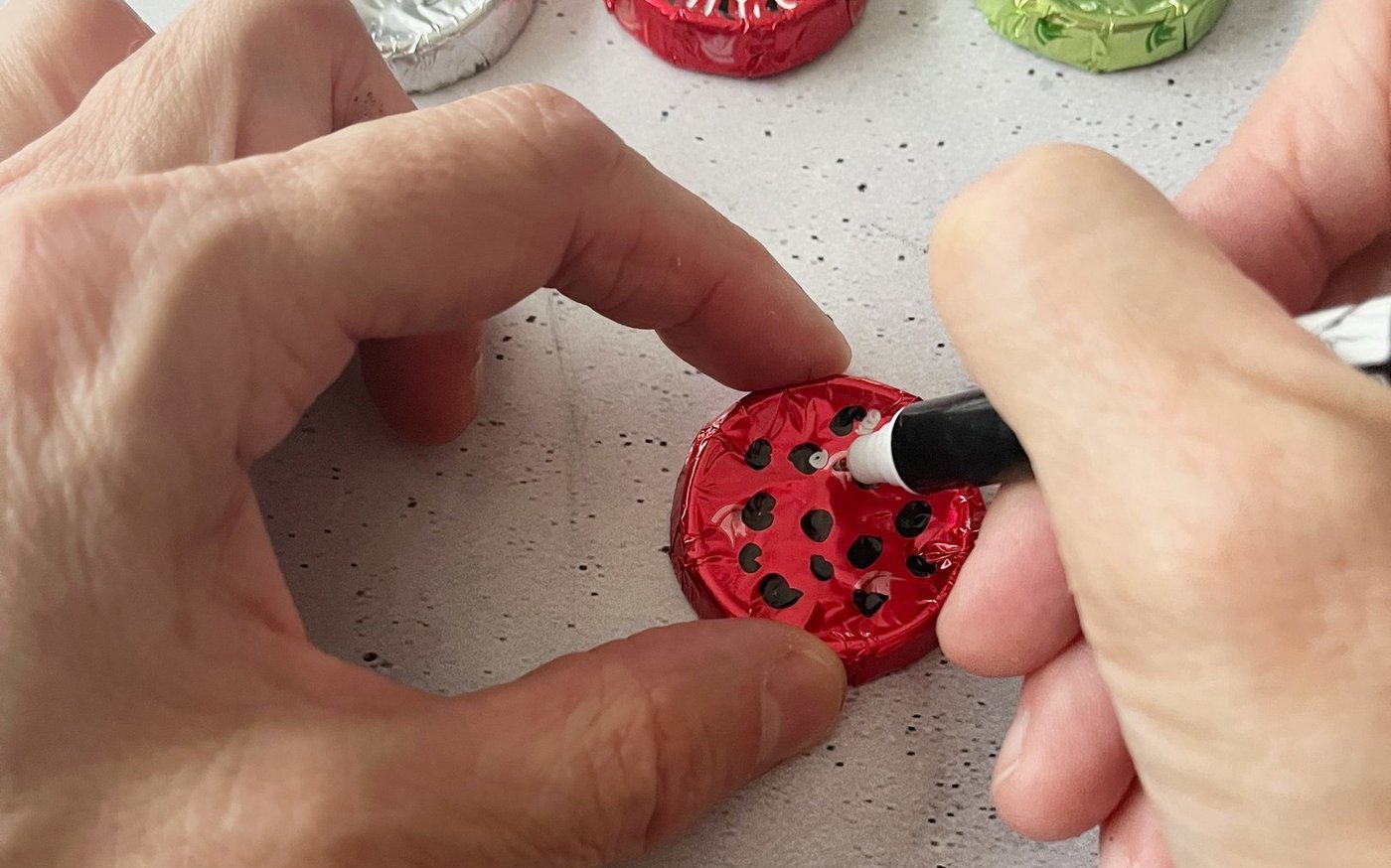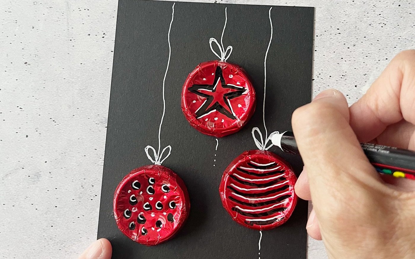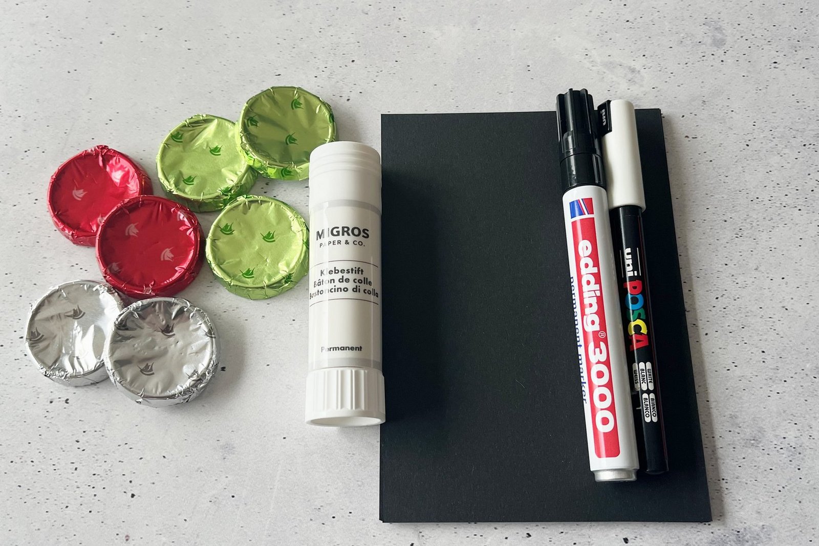 Fürs Weihnachtsfest einen Gutschein originell verpacken. Zum Jahresende eine Karte verschicken, die den Empfängern ein Lächeln aufs Gesicht zaubert. Oder eine witzige Tischkarte fürs Silvesteressen fertigen: Die hier vorgestellten Karten mit in farbigen Folien verpackten Schoggi-Rondellen sind vielseitig einsetzbar. Die dafür verwendeten runden Schokoladen heissen genau genommen «Choco-Croquettes». Der Name stammt…