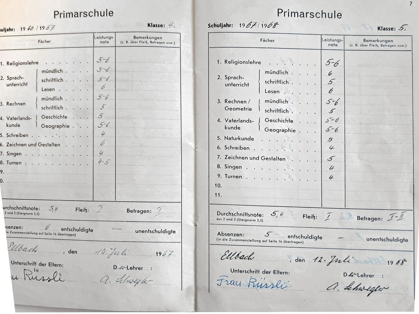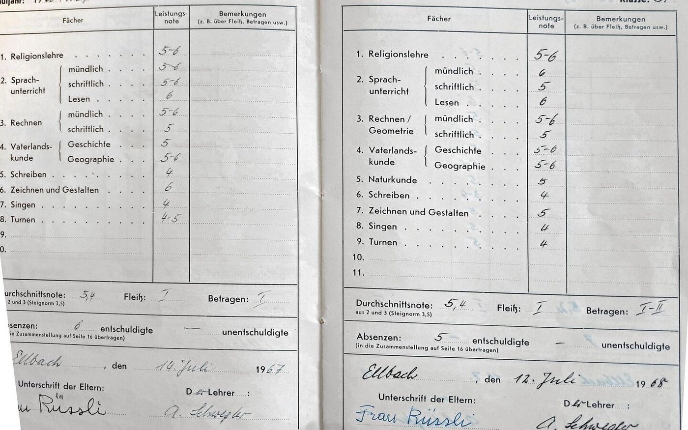 Vom 26. April 1963 bis 11. Juli 1969 besuchte ich die Gesamtschule Ellbach in der Gemeinde Luthern im Kanton Luzern. Wie man anhand der Noten auf dem Foto sieht, war ich ein guter Schüler. In der fünften Klasse kassierte ich jedoch eine I–II beim «Betragen» anstatt der gewohnten Bestnote I. Was war passiert? Der Unterricht lief so: Der Lehrer Anton Schwegler unterrichtete alle Kinder von der ersten bis zur sechsten…