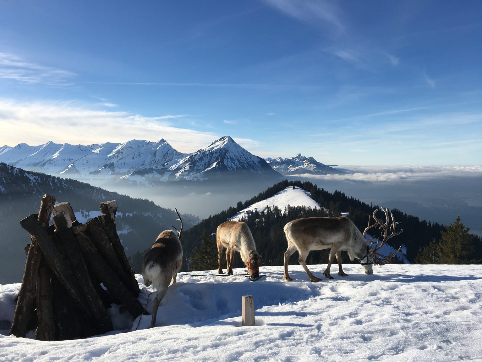 Passend: Verschneite Alpenkulisse und Rentiere. (Bild zvg)