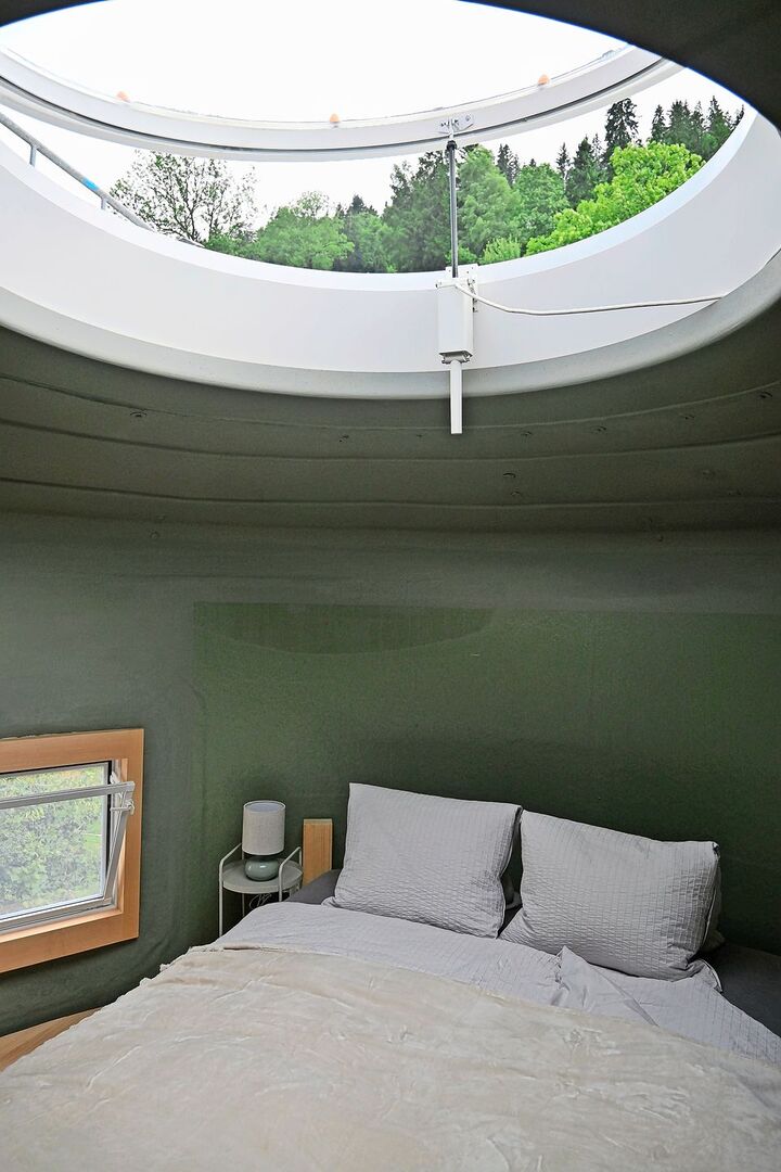 Auf dem Bio-Landwirtschaftsbetrieb der Geschwister Luzia Kaufmann und Regula Erni-Kaufmann vom Tannenhof kann ab Mitte August in einem ehemaligen Futtersilo übernachtet werden. Die Voreröffnung mit Gästen und Crowdfunding-Unterstützern fand letztes Wochenende statt. Ins alte Silo wurden vier Stockwerke eingebaut: Im Eingangsbereich unten Bad mit WC und Dusche, im ersten Stock Essbereich mit Zugang zu einem Aussensitzplatz, im zweiten Stock Lesebereich mit Schlafsofa, und im obersten Stock ein Doppelbett direkt unter der Lichtkuppel.