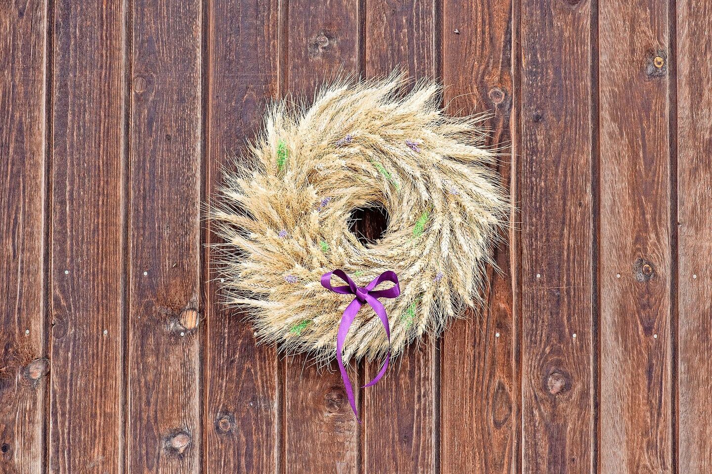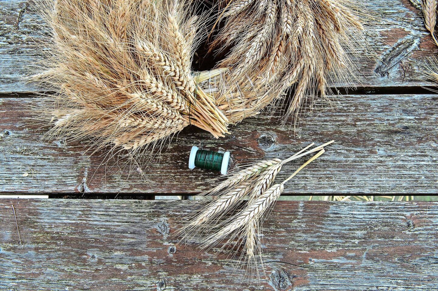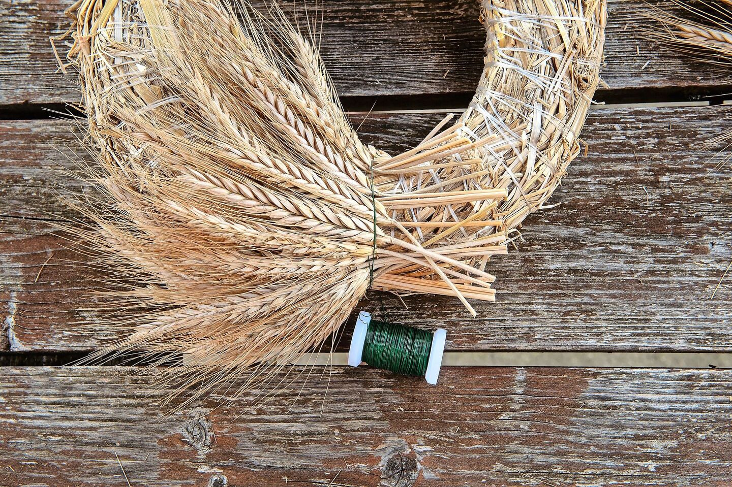 Die Idee für den Getreide-Kranz stammt von Pinterest und aus YouTube-Videos.