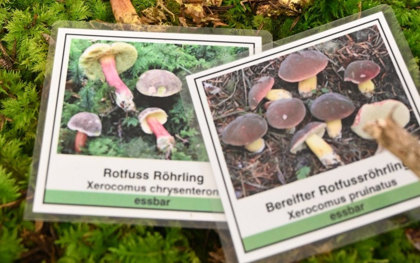 Der Rotfussröhrling und der Bereifte Rotfussröhrling haben beide einen rötlichen Stiel. Der Hut ist braun. Frassstellen sind immer rot. Den Rotfüsslingen ähnliche Pilze wie beispielsweise der Maronenröhrling sind alle ebenfalls essbar. Rotfüsslinge sind ein häufiger Pilz, der von Juli bis November gefunden werden kann. Sie wachsen im Laub- und Nadelwald und haben keine besonderen Bodenansprüche.