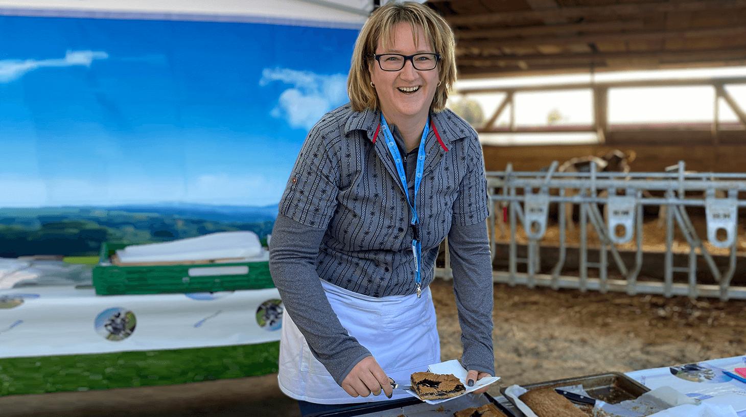 Als vierte in der Runde der Landfrauen hat Vreni Hüberli aus dem thurgauischen Ennetbühl ihre Gäste verwöhnt. Und das nicht zu knapp. Ihr Menü zeichnete sich durch grosse Portionen und toll angerichtete Teller aus. Dafür hat sie jedoch keine aufwendige Deko benötigt. Die einzelnen Komponenten in den Gängen und wie sie angerichtet waren, bildeten tolle Farbkontraste und benötigten daher keine zusätzliche grosse Deko. Vreni Hüberli hat zur Vorspeise Blattsalat mit Eierbrötli und Omelettengrüessli, zum Hauptgang Hackbraten mit Knöpfli, Rüebli und Bohnenbündeli und zum Dessert Heidelbeer-Nidleflade und einen Beerentraum serviert. Dass in ihrem Menü einige Eier verarbeitet wurden, war angesichts der vielen Legehennen des Betriebs fast zu erwarten gewesen.