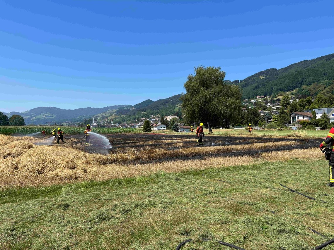 Die ausgerückte Feuerwehr konnte das in Brand gesteckte Stroh- und Maisfeld an der Sinkernstrasse löschen. Laut der Kantonspolizei St. Gallen beläuft sich der Sachschaden auf etwa 1500 Franken.