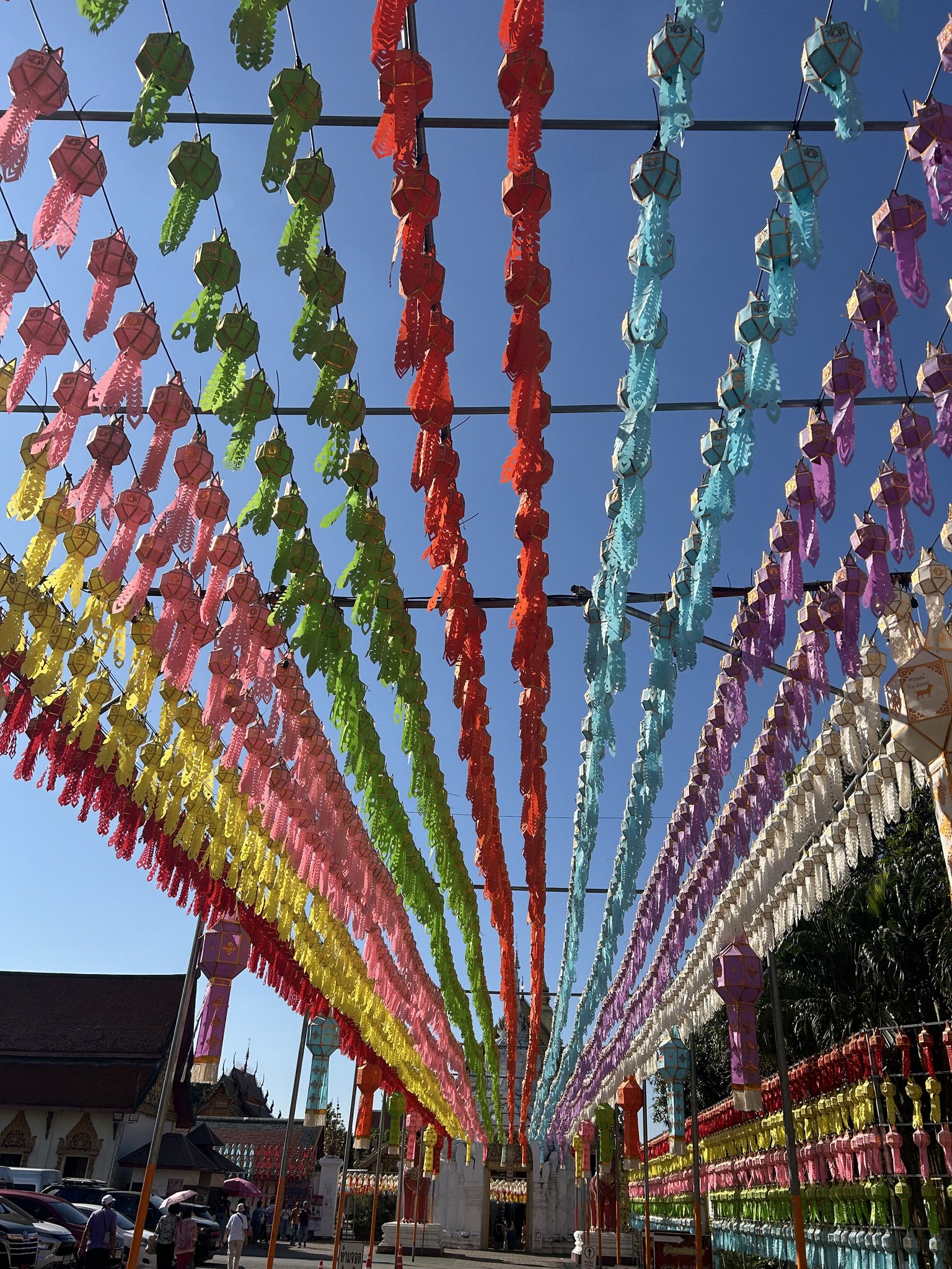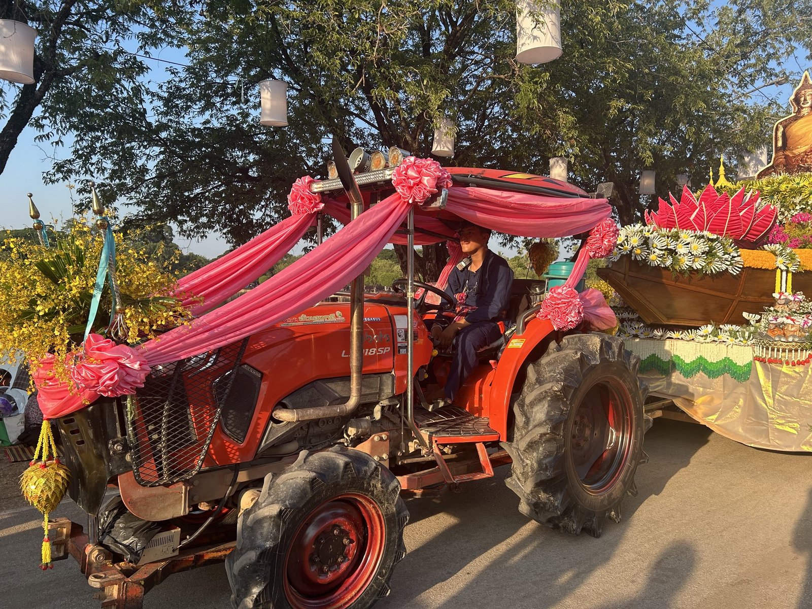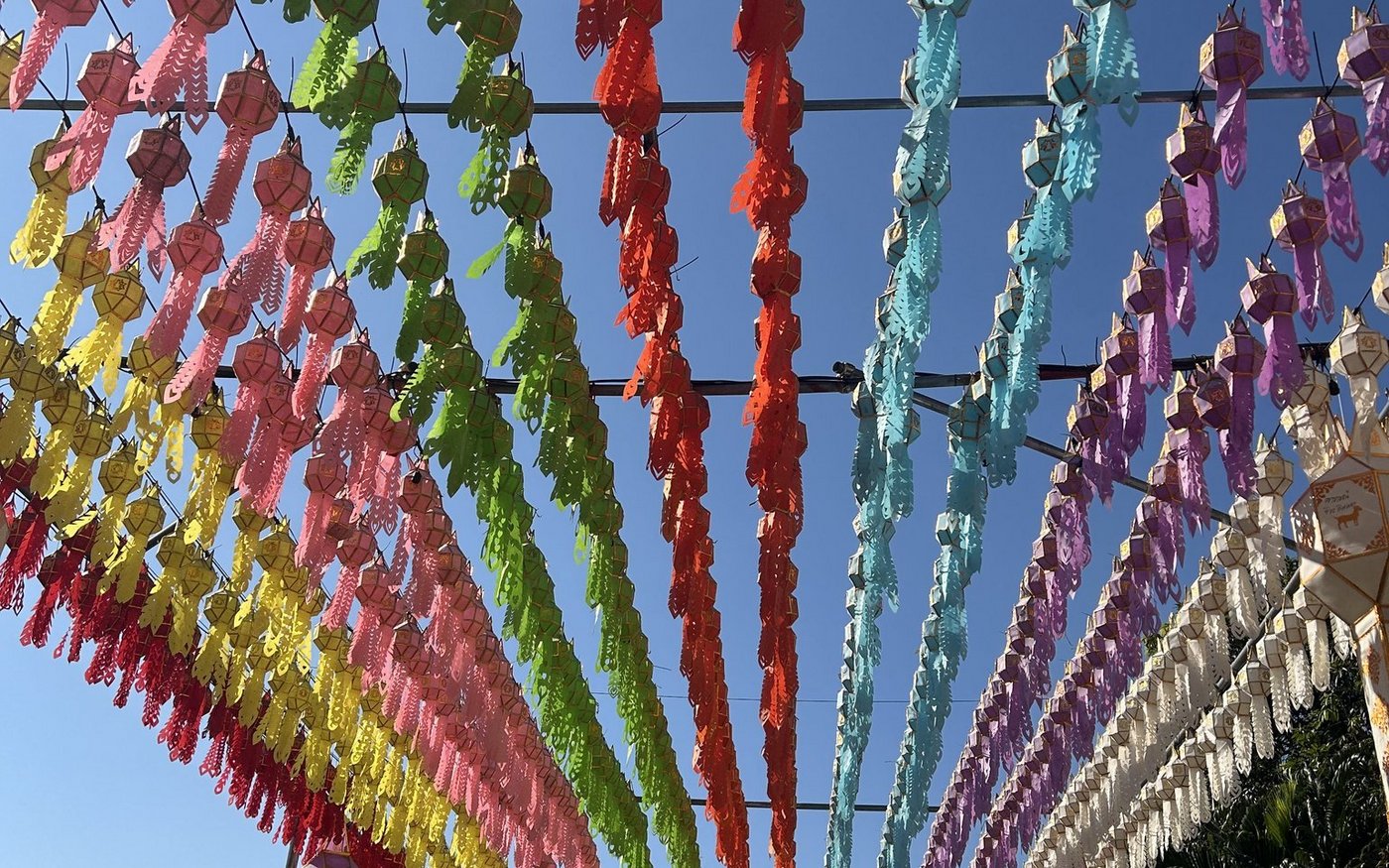 Im Zeitraum, in dem wir Thailand bereisen, findet gerade das weltbekannte Lichterfest statt. In jeder Grossstadt wird es anders gefeiert, zum Teil auch unterschiedlich lange. Zum Zeitpunkt des Festes befinden wir uns in Sukothai und besuchen den festlichen Umzug in einer riesigen Tempelanlage. Wo man hinschaut, sieht man farbige Kostüme, verkleidete Menschen, farbige Umzugswagen, Traktoren und Dekorationen. Es ist wahrlich ein farbenfrohes Fest, das wir miterleben dürfen.