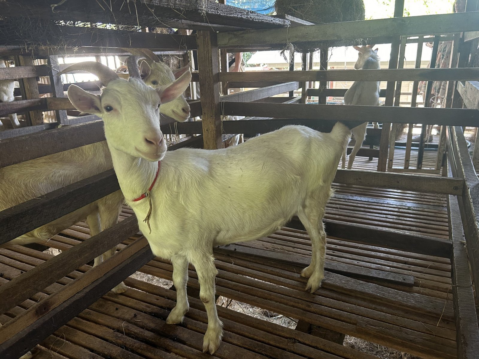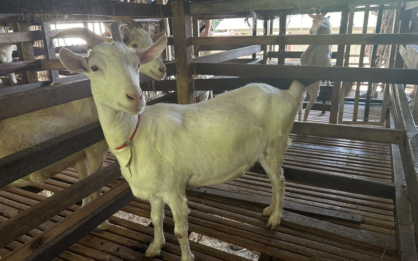 Gegen Ende unserer Reise besuchen wir einen Schweizer Koch auf seiner Ziegenfarm, wo natürlich Ziegenkäse herstellt wird. Wir erhalten einen Einblick in den Stall der Ziegen, der im oberen Stock einer Holzhütte angelegt ist. Nach der Besichtigung werden wir von den gastfreundlichen Bewirtschaftern des Hofes zu Tisch gebeten. Dieser ist gedeckt mit Ziegenkäse, Trauben, Mangos und Nüssen.