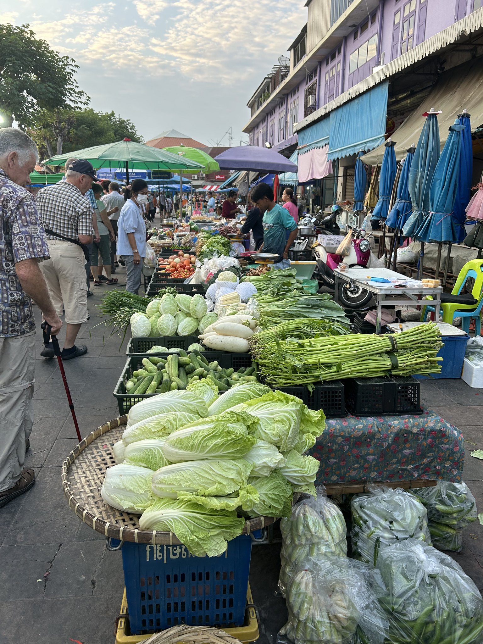 Für den Besuch auf dem Markt in Uthai Thani, den wir frühmorgens besuchen, instruiert die thailändische Reiseleiterin und bereits vorher, dass wir einen Geruch wahrnehmen oder eine Zubereitungsart sehen werden, die wir uns nicht gewöhnt sind. Wir sollen nicht die Miene verziehen oder die Nase zuhalten, da dies als unfreundlich angesehen wird, sondern einfach weitergehen. Gespannt schlendern wir durch die enge Marktgasse und bewundern auf allen Seiten die Ware, die zum Verkauf angeboten wird.